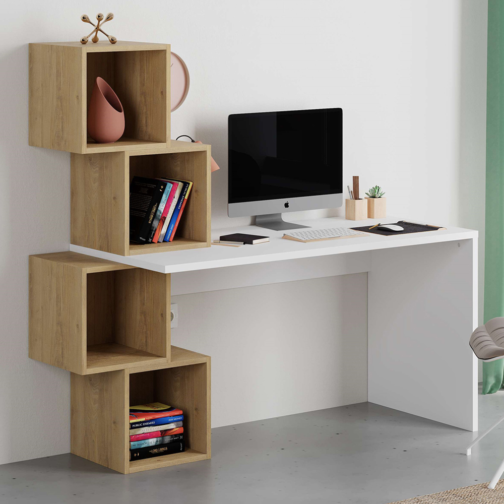 Decorotika Rino 4 Shelf White Marble Effect Writing Desk