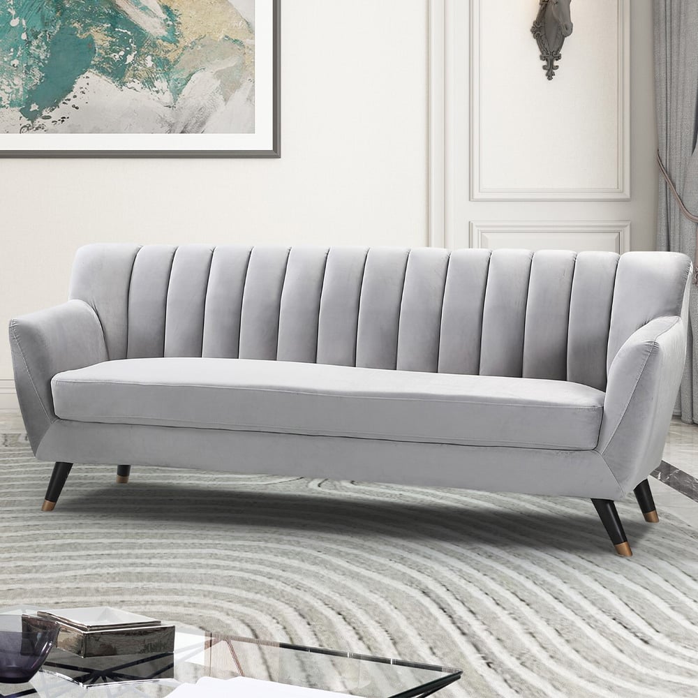 Morgan 3 Seater Grey Plush Velvet Sofa