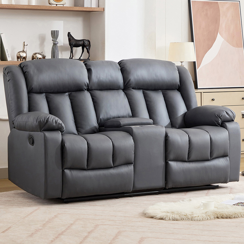 Glendale 2 Seater Grey Bonded Leather Manual Recliner Sofa