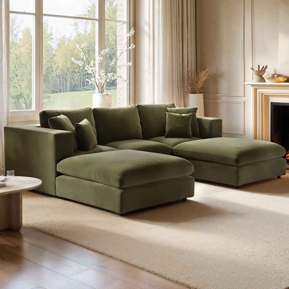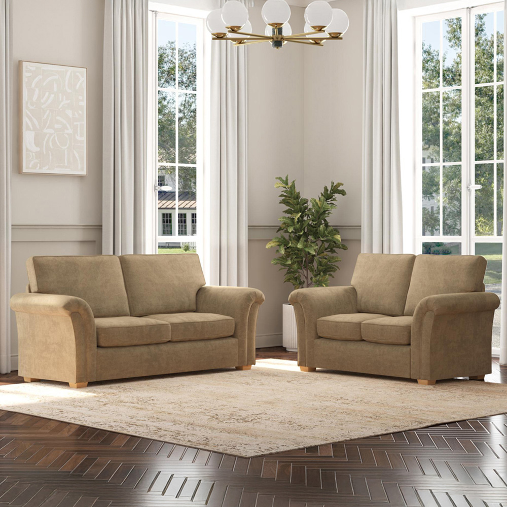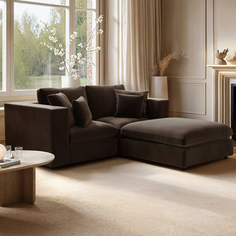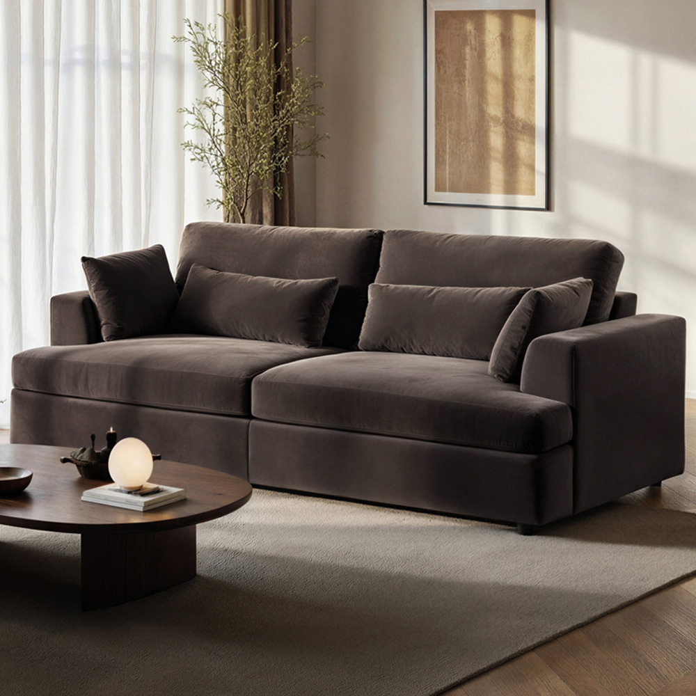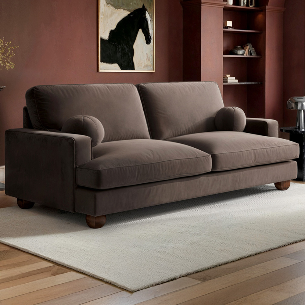 Solace+Co Drew Brown 3 Seater Velvet Sofa