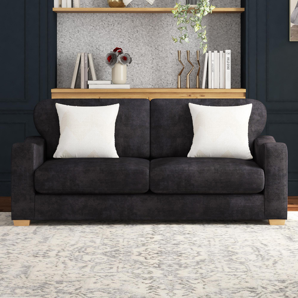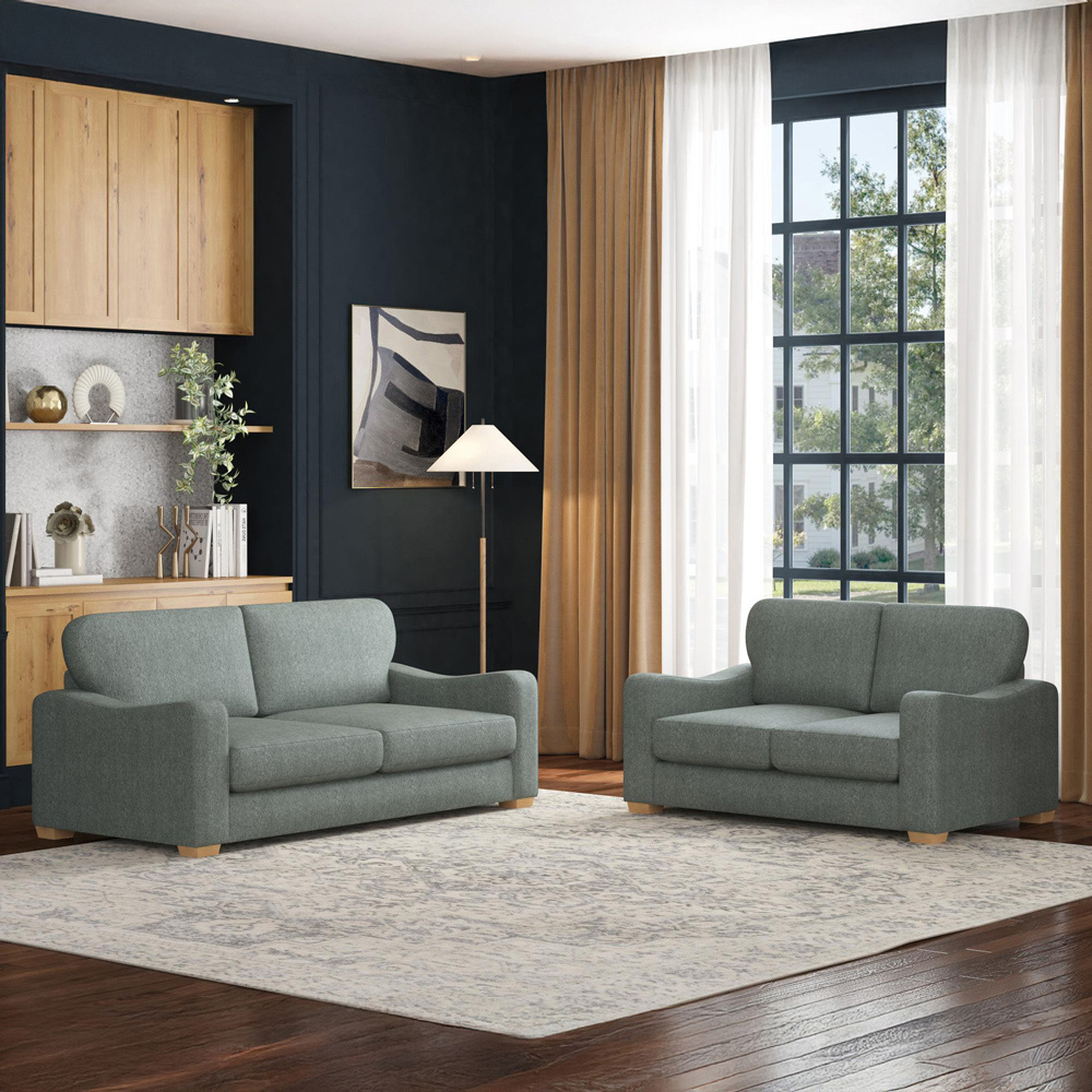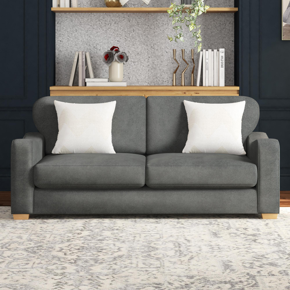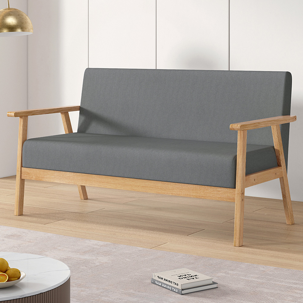 Grey 3 Seater Padded Country Wooden Sofa