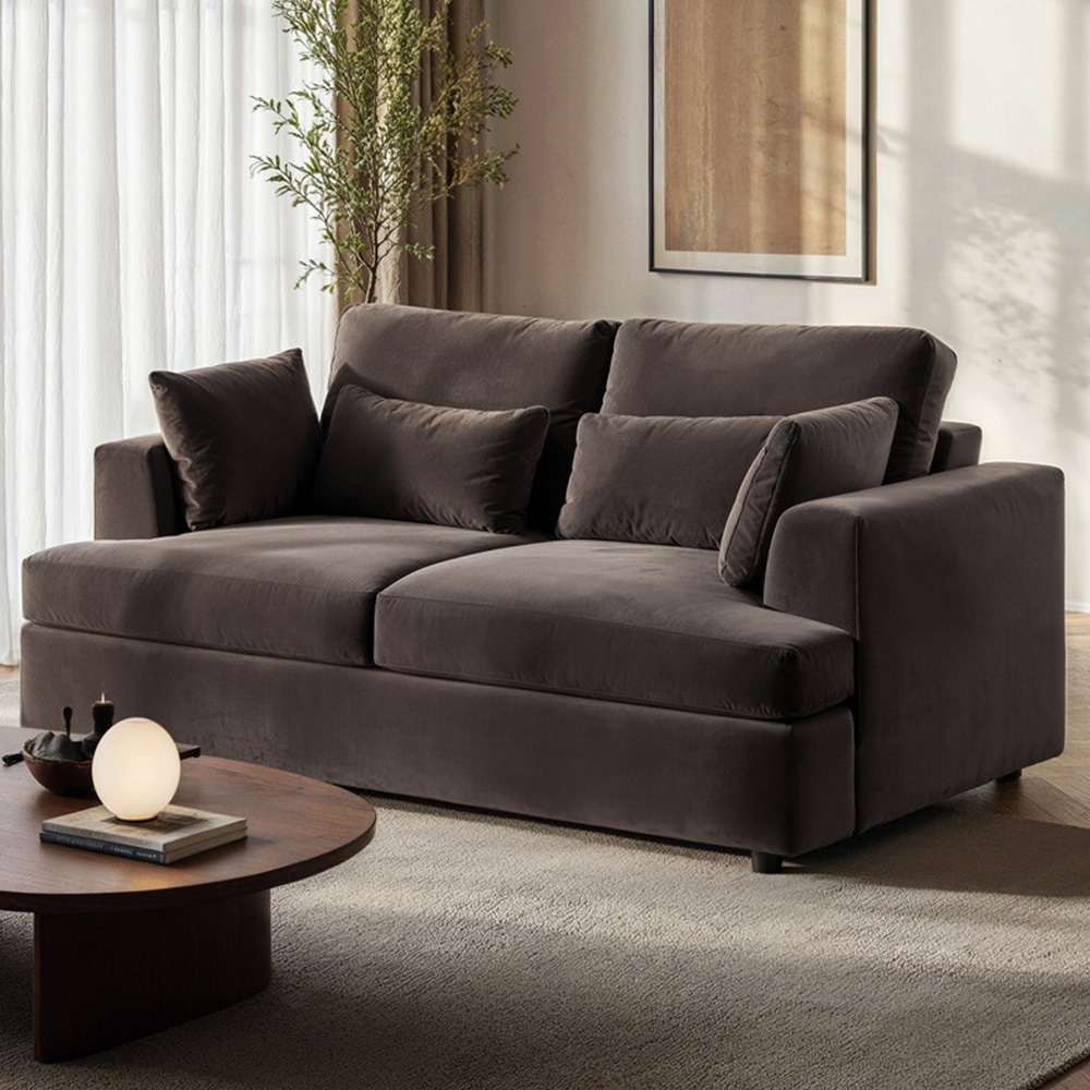 Solace+Co Drew Brown 2 Seater Velvet Sofa