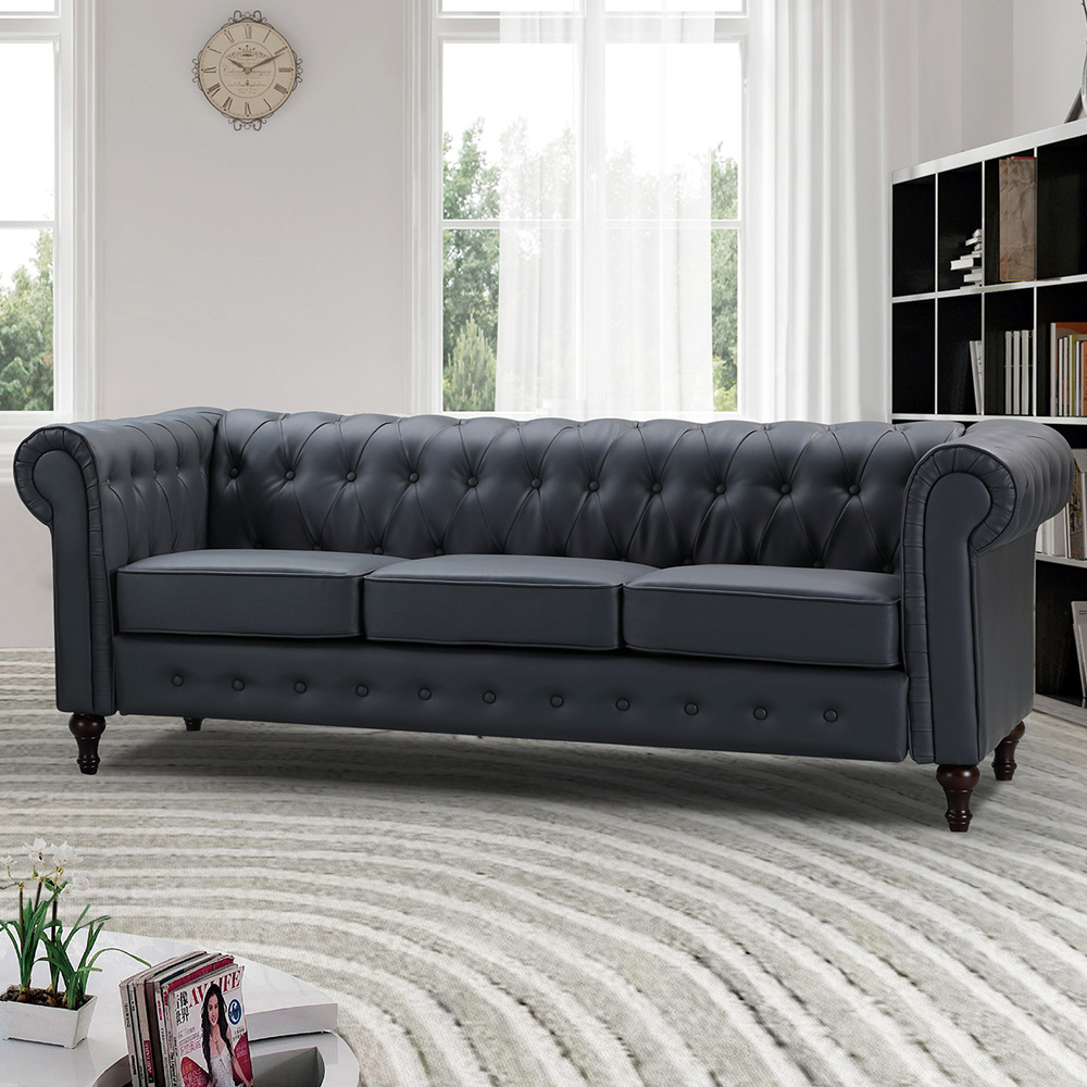 Mackenzie 3 Seater Black Plush Velvet Sofa