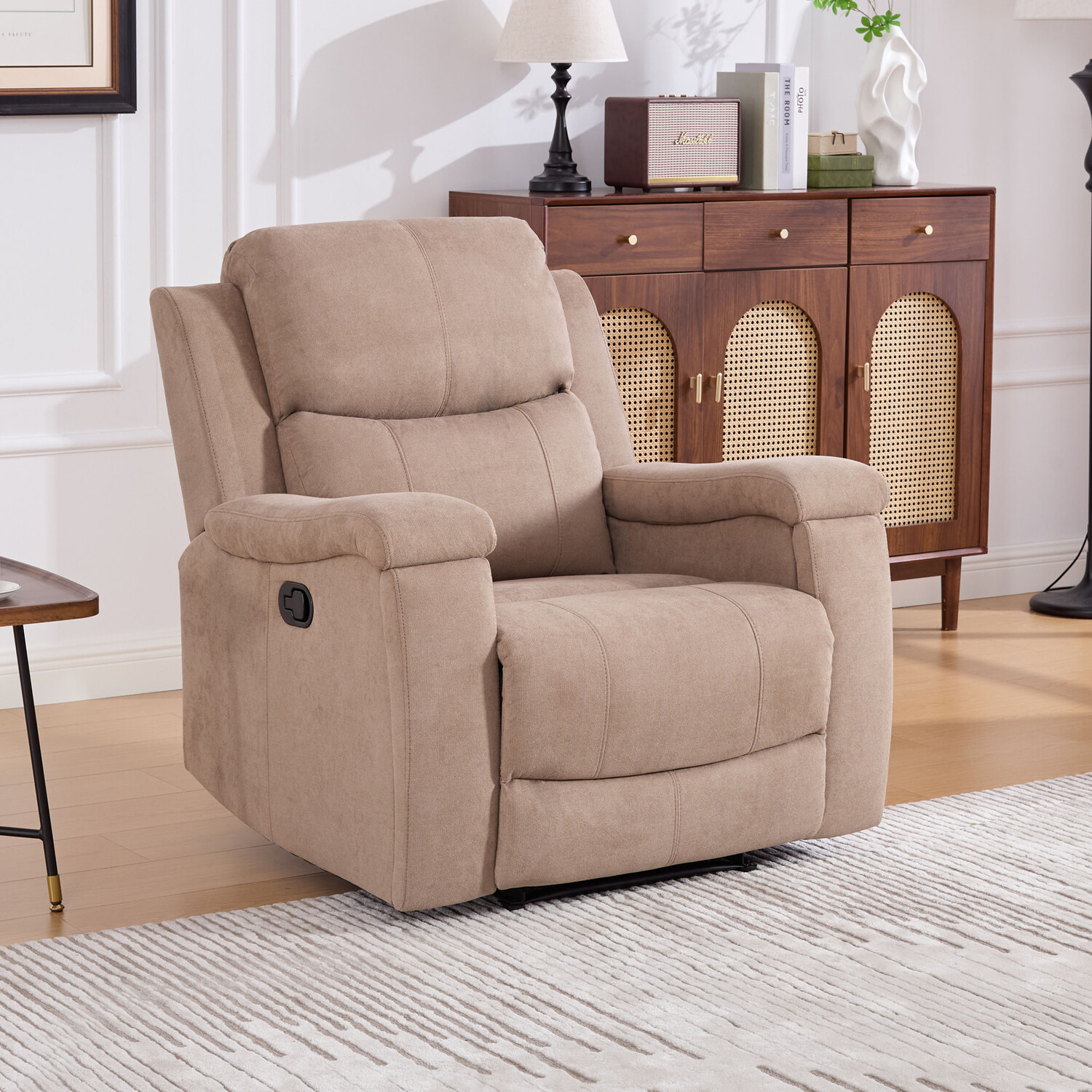 Glendale Single Seater Cream Bonded Leather Manual Recliner Sofa
