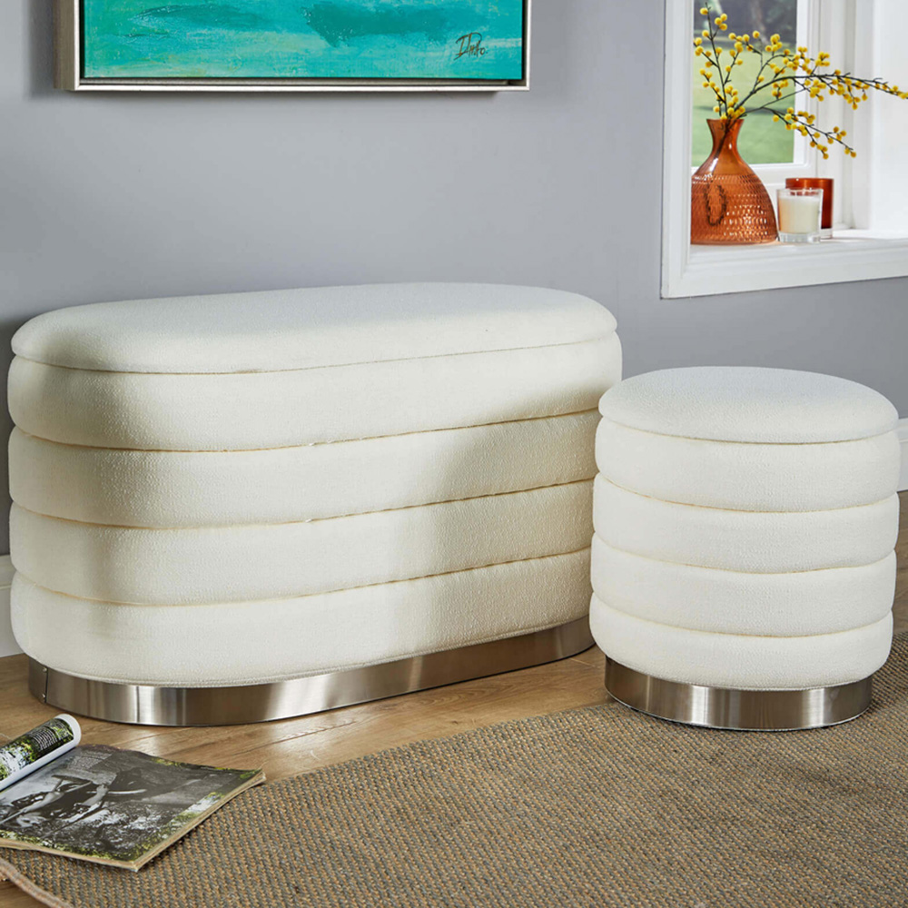 Whether you need round, square or rectangular, our ottomans and foot stools can fit into any space to provide additional storage or even act as a coffee table. If you need extra seating, they can also double a bench to give your guests somewhere comfortable to sit.