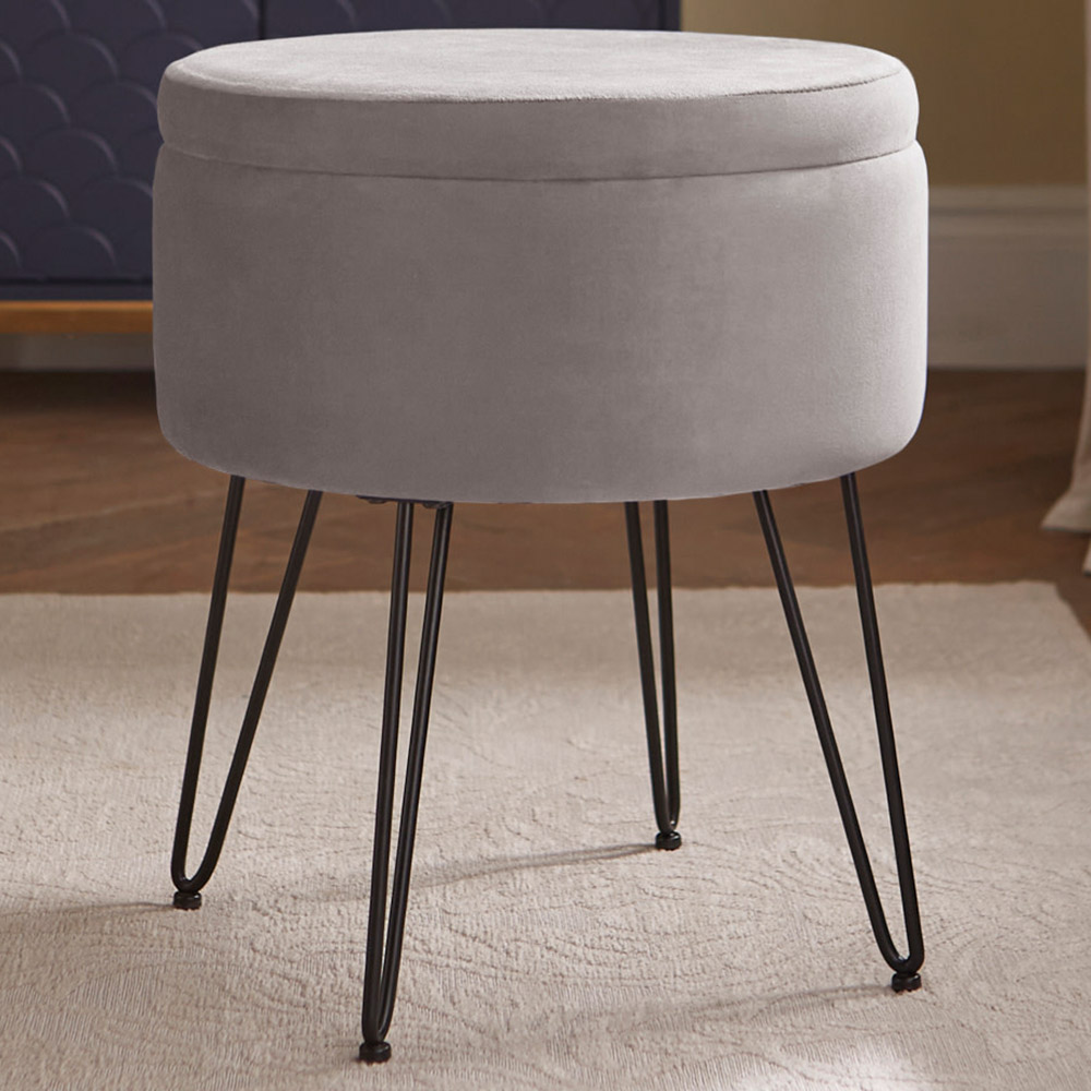 GFW Klara Grey Velvet Storage Stool