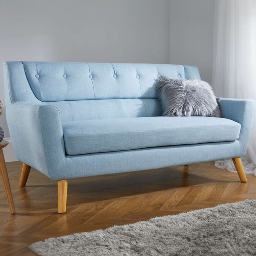Jasmine 2 Seater Linen Blue Sofa with Storage