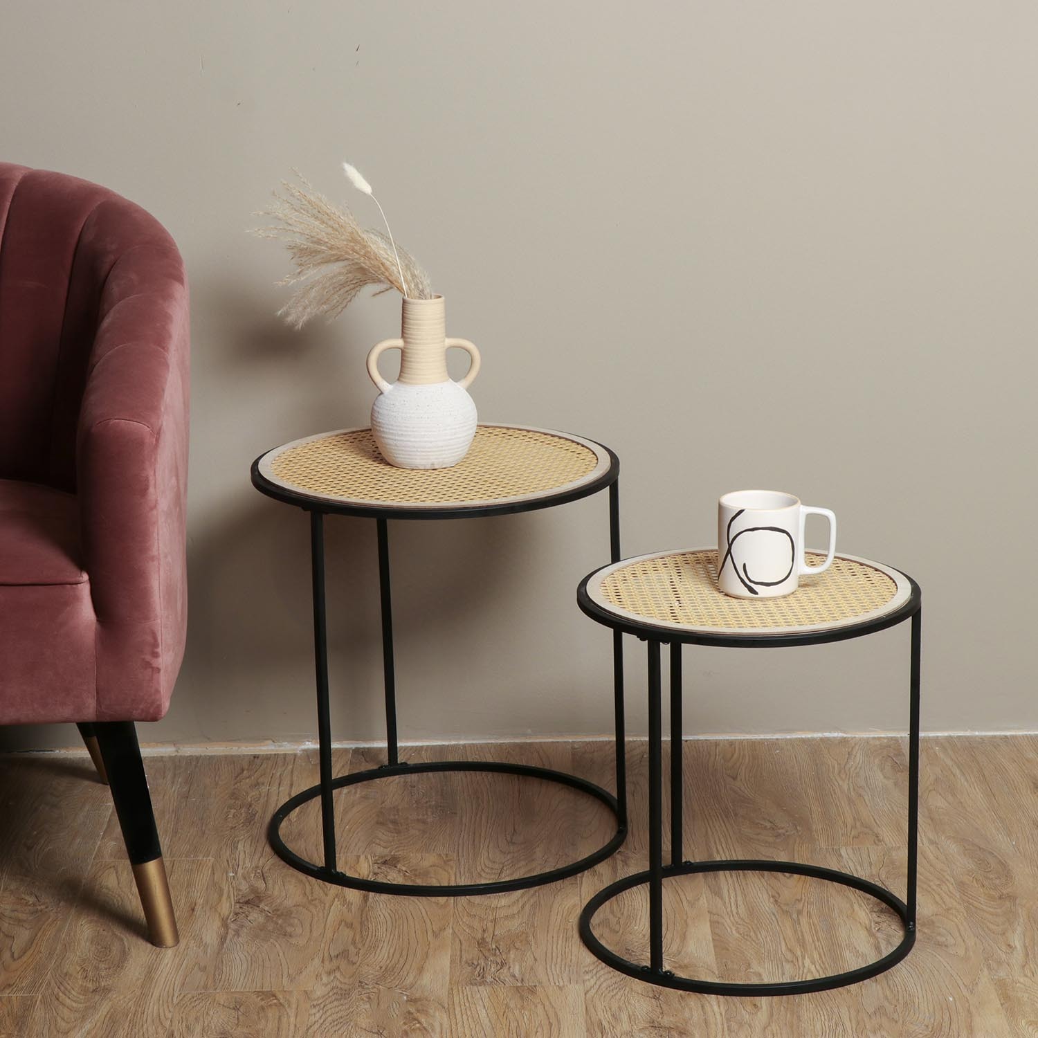 Desser Manhattan Natural Rattan and Mango Wood Black Side Table
