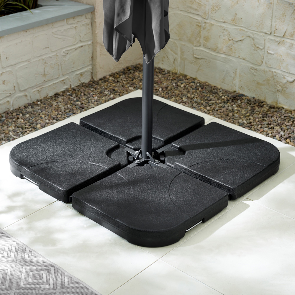 Keep your outdoor parasol firmly in place with this PE plastic base, designed to be weighted down with either sand or water. Combine it with one of our Cantilever fabric parasols to complete your garden setup. Please note that the parasol itself is not included in this listing; however, base and parasol combinations are available to purchase.