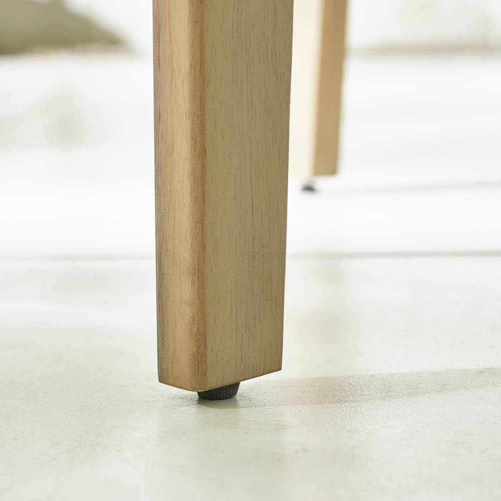 Bring a touch of rustic charm to your outdoor space with this solid wood round dining table. Ideal for gardens, patios, or conservatories, its versatile design complements ultra-modern, boho, and traditional farmhouse styles alike. The sturdy acacia wood construction features a light teak-coloured stain for enhanced durability and fade resistance, while the slatted sundial pattern tabletop adds a distinctive touch. Simple self-assembly is required, with easy-to-follow instructions included, and for peace of mind, the table comes with a one-year warranty.