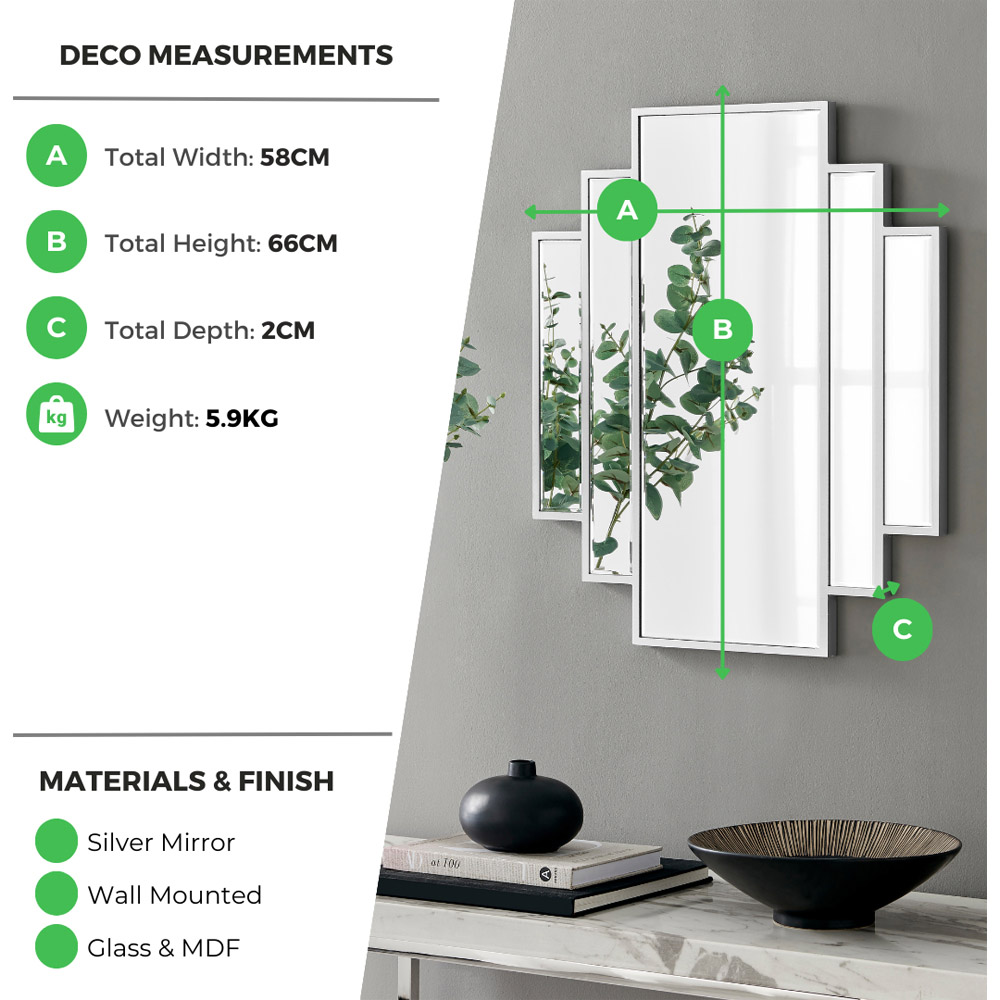 Furniturebox Jazz 1920s Inspired Silver Small Wall Mirror 66 x 58cm
