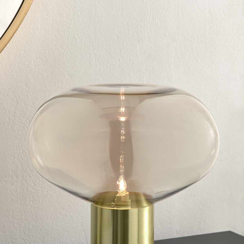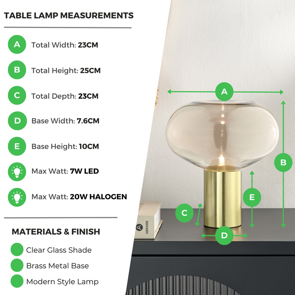 Bring iconic mid-century design to your space with the Sadie Table Lamp from Furniturebox. A statement clear glass bowl shade sits atop a bright brass metal base, creating a modern focal point that complements any modern decor. Perfect for illuminating gloomy corners in living rooms, bedrooms, or home offices, this lamp adds a soft, ambient glow, providing an illuminating finishing touch to your decor. Requires a G9 2.3W LED or Max 28W HALOGEN bulb (not included).