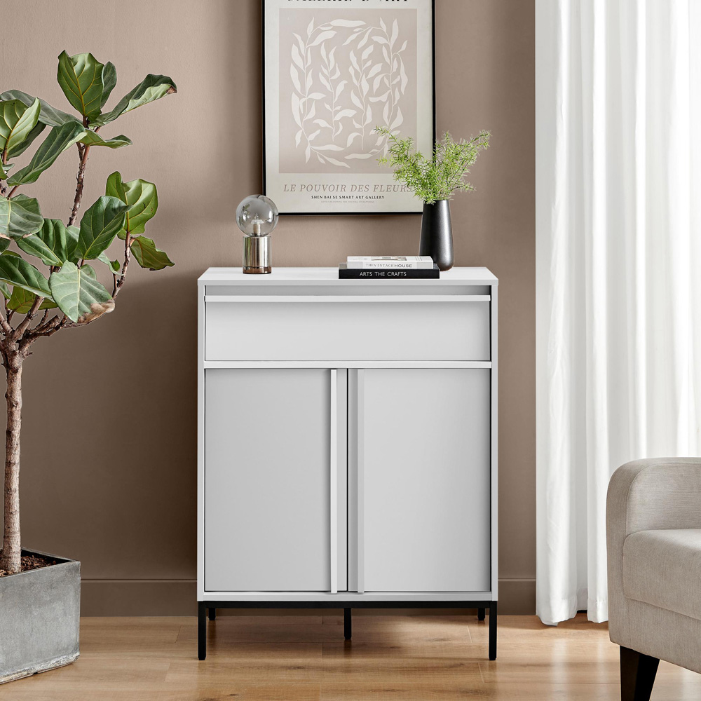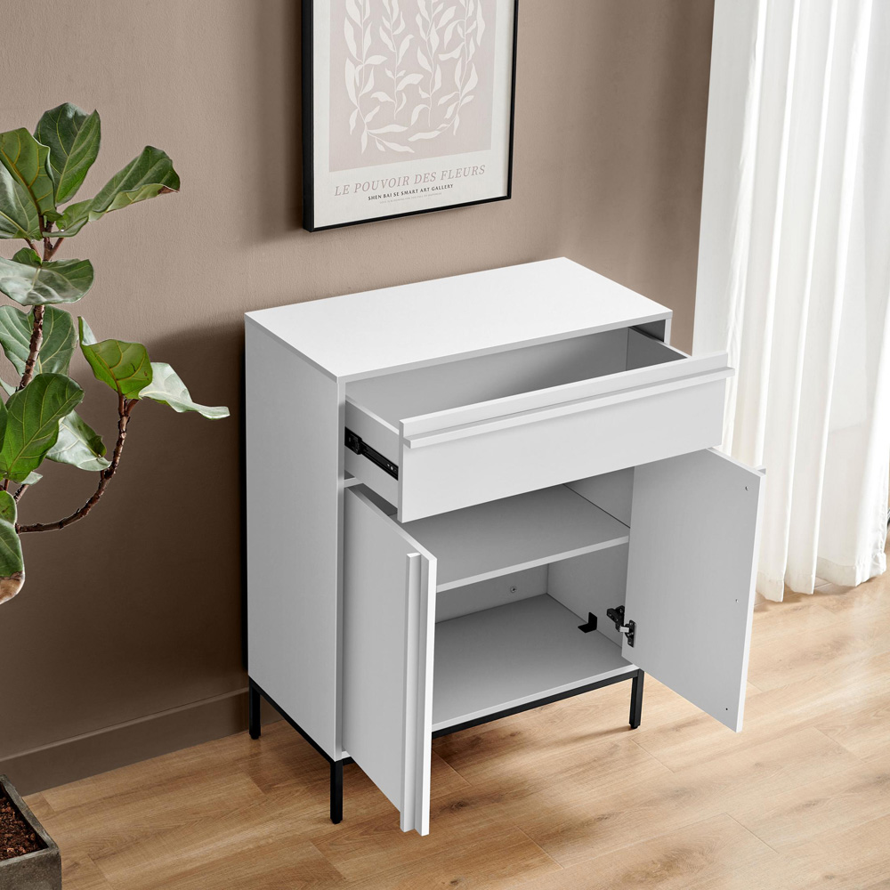 Furniturebox Sval 2 Door Single Drawer Off White Wooden Sideboard