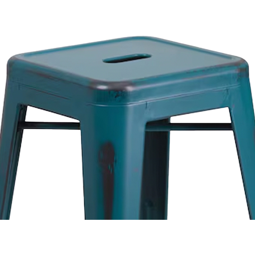 FWStyle Blue Distressed Steel Assembled Bar Stool 24 inch Set of 4