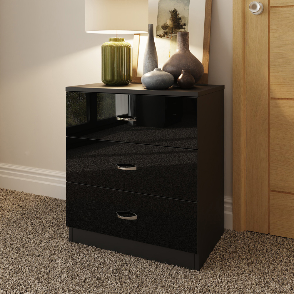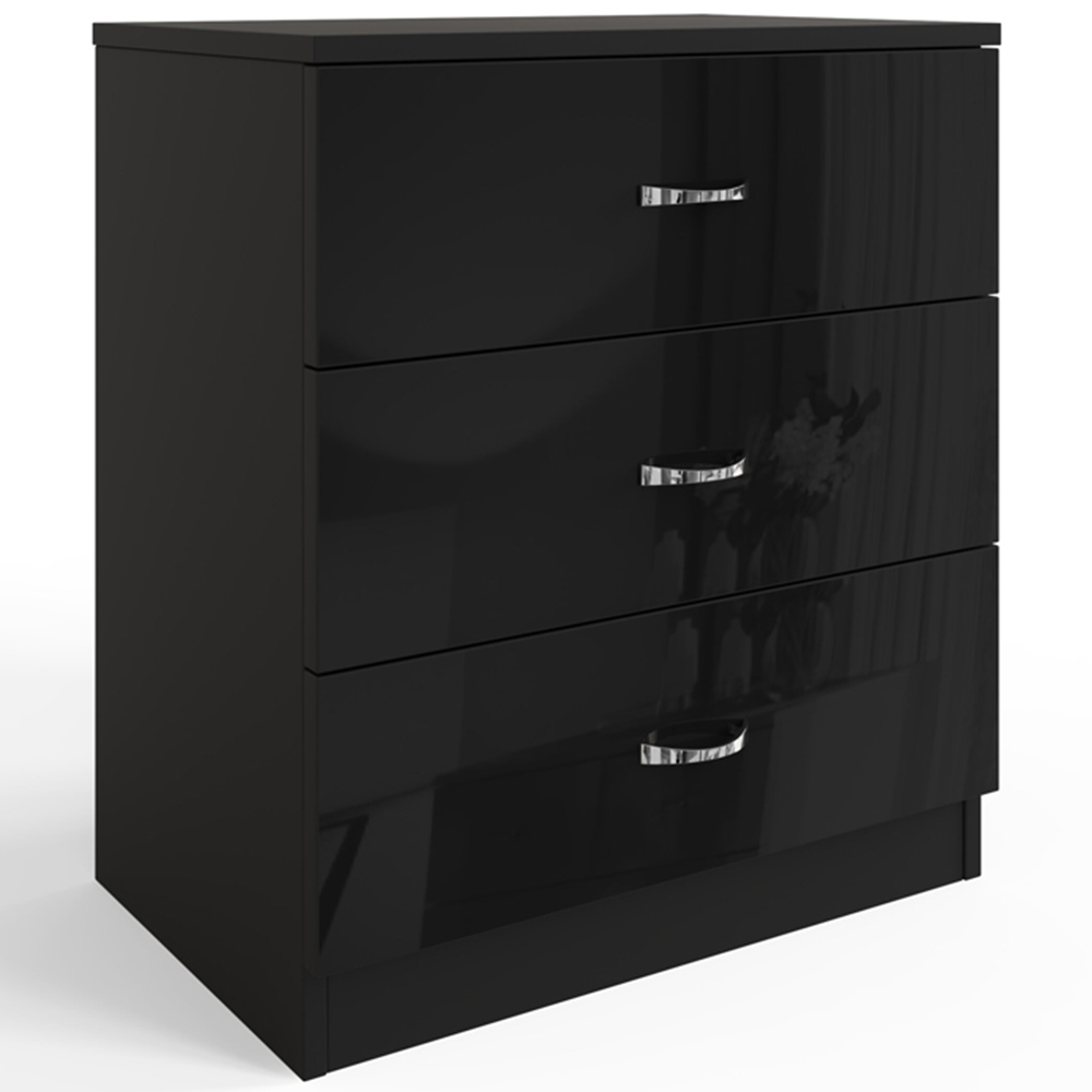 FWStyle Chilton 3 Drawer Black Gloss Chest of Drawers