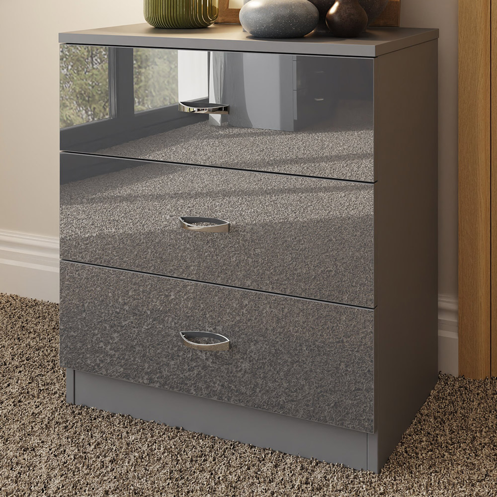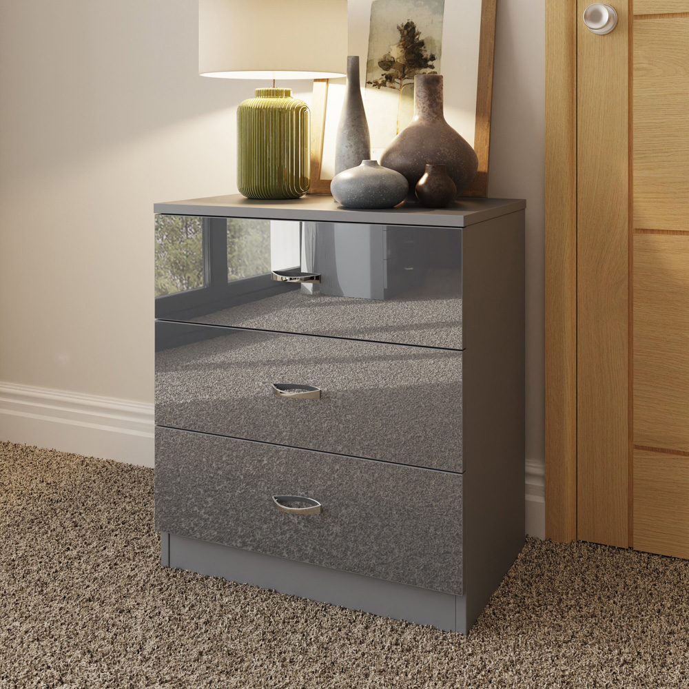 FWStyle Chilton 3 Drawer Grey Gloss Chest of Drawers