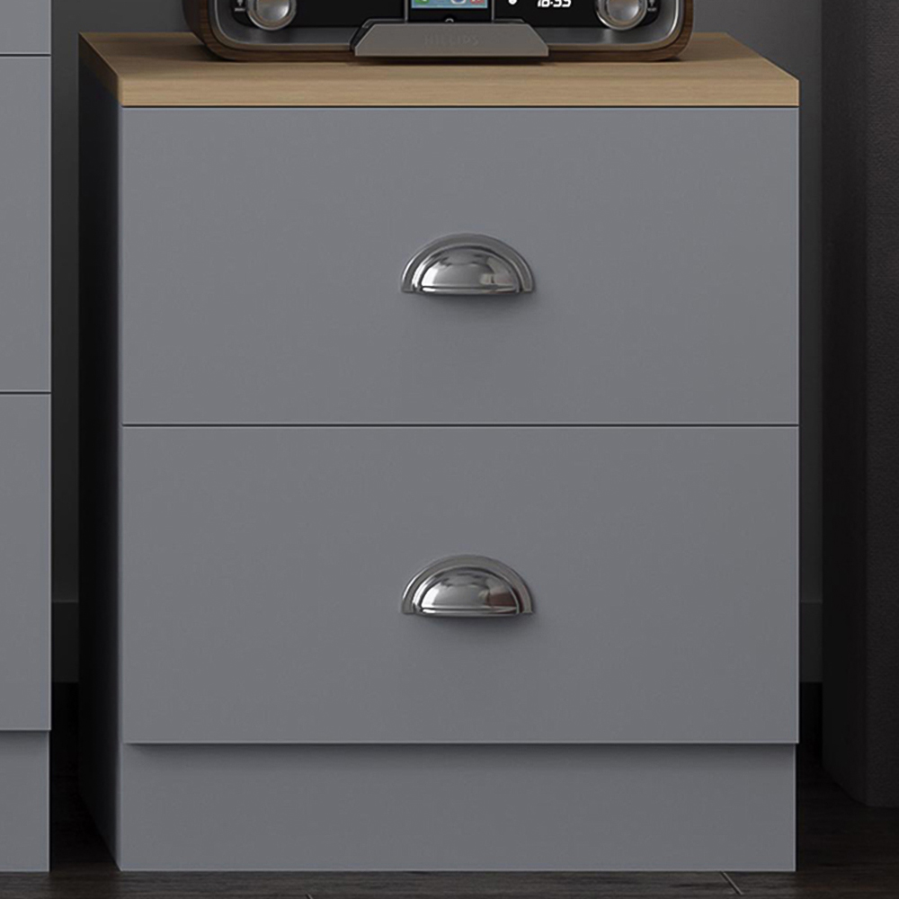 FWStyle Esher 2 Drawer Grey Oak Bedside Table