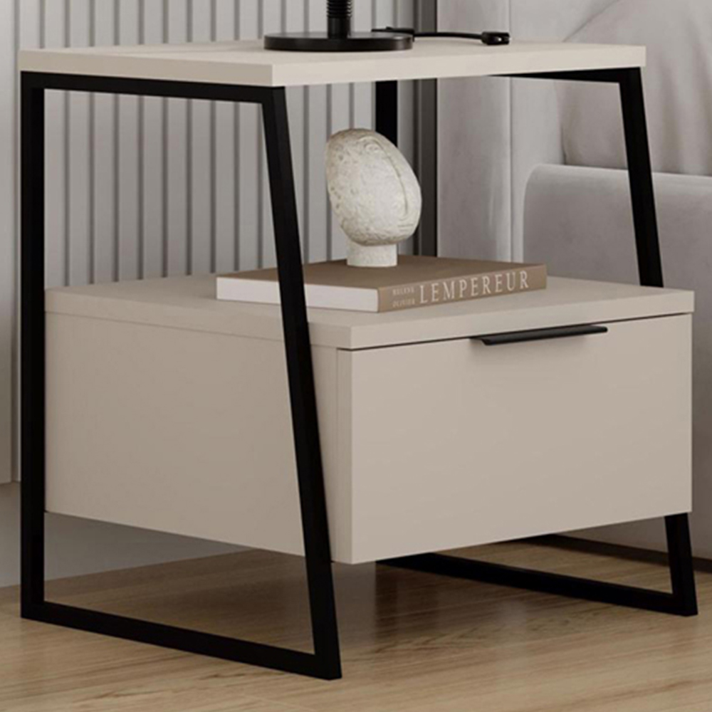 Introducing the FWStyle Single Door Bedside Table: a sleek and practical addition to any modern bedroom. Featuring a clean white finish, this stylish cabinet is crafted from high-quality engineered wood, complemented by a robust black metal frame that effortlessly blends with any décor. Behind its single door lies a spacious internal storage compartment, perfect for stowing away bedside essentials and keeping your space clutter-free. The easy-grip metal handles ensure smooth and effortless opening and closing, while the scratch-resistant melamine coating guarantees lasting good looks, even with daily use. Arriving in eco-friendly, drop-tested packaging to ensure it reaches you in perfect condition, this bedside table offers the ideal combination of elegance and practicality for your home.