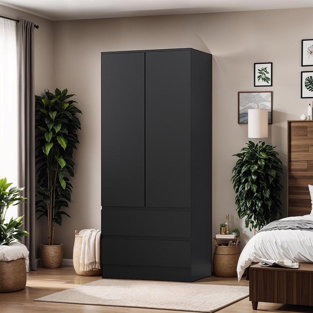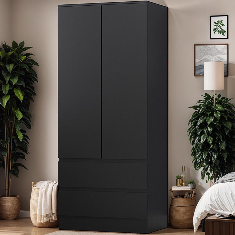 FWStyle Stora 2 Door 2 Drawer Matt Black Wardrobe
