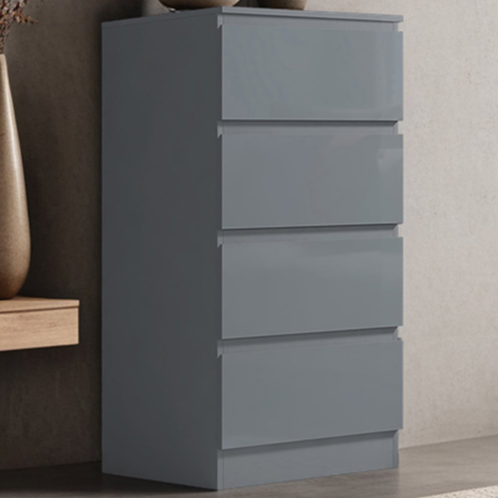 FWStyle Stora 4 Drawer Grey Gloss Chest of Drawers