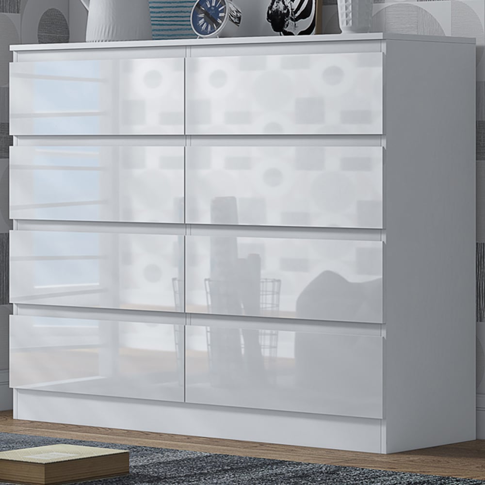 FWStyle Stora 8 Drawer White Gloss Chest of Drawers