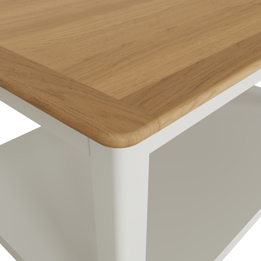 Make a statement with the Large Oak Coffee Table. Its elegant White Linen finish, crafted from a blend of solid oak, oak veneer, and MDF, offers both lasting durability and refined style. The easy-clean surface ensures effortless maintenance, while the robust construction promises years of dependable use. A convenient open shelf provides practical storage. This spacious coffee table is perfect for everyday living and entertaining.