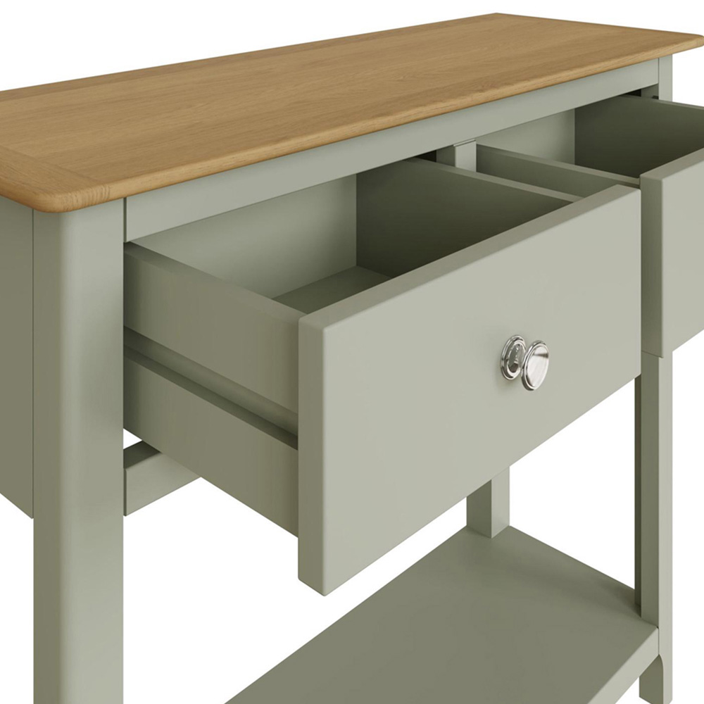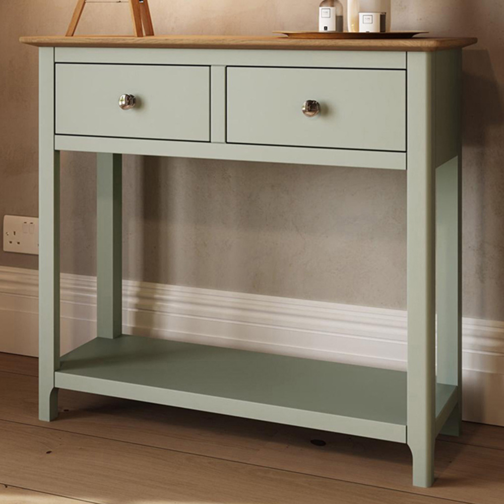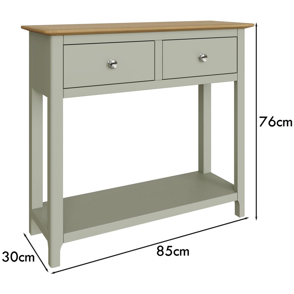 Introducing the 2 Drawer Oak Console Table, where elegance meets everyday functionality. Finished in a sleek colour, this piece will bring a modern aesthetic to your hallway, living room, or entrance. Constructed from a blend of robust solid oak, MDF, and oak veneer, this console table is designed for durability while showcasing the natural grain of the wood. It features two generously sized drawers, each equipped with easy-grip metal handles, offering convenient storage and helping you maintain a clutter-free environment. Delivered flat-packed for straightforward assembly, allowing for quick and hassle-free set-up.