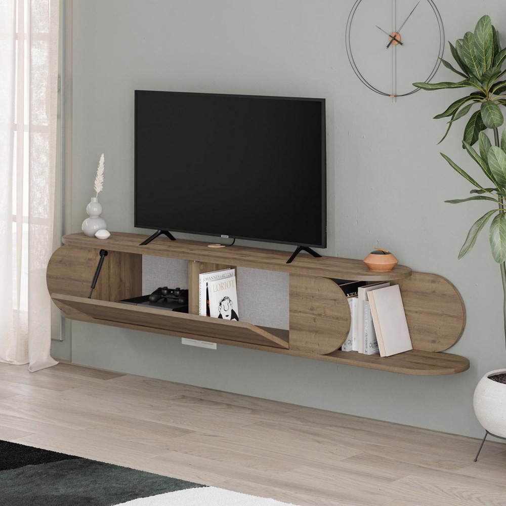 Elevate your living space with the Tone TV Stand, where minimalist design meets everyday practicality. Its clean lines blend seamlessly into any modern setting, offering both style and substance. A broad surface readily accommodates your television, while twin side shelves provide an elegant platform for displaying cherished ornaments. Concealed behind a push-to-open door lies a generous storage area, perfect for stowing away consoles, films and games. Designed for wall mounting, the Tone TV Stand delivers a streamlined, contemporary aesthetic. Ideal for the living room or bedroom, this stand ensures your space remains both stylish and impeccably organised.