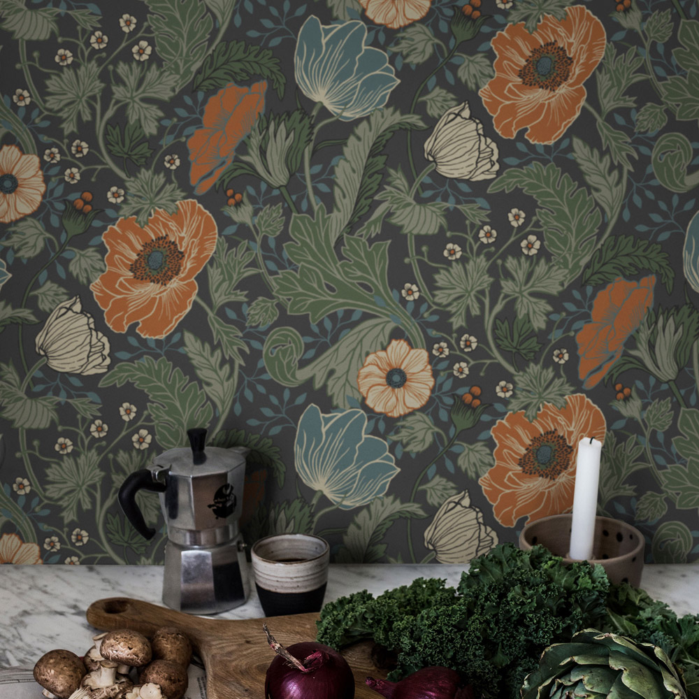 Apelviken 2 Floral Woodland Green and Terracotta Wallpaper brings the beauty of nature indoors with its rich, organic floral design. This stunning wallpaper combines dense floral woodland patterns with simpler, more delicate designs, creating a warm and inviting atmosphere. The captivating colour palette features deep blues and blacks alongside natural greens and terracotta, perfect for adding a touch of drama and sophistication to any room. This high-quality, washable, and dry strippable wallpaper is easy to hang thanks to its paste-the-wall application. Roll width: 53cm. Roll length: 10.05m. Pattern repeat: 53cm. Pattern match: Half-drop match. Prepare to wow your guests.