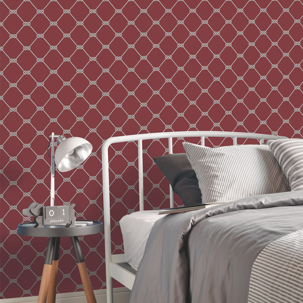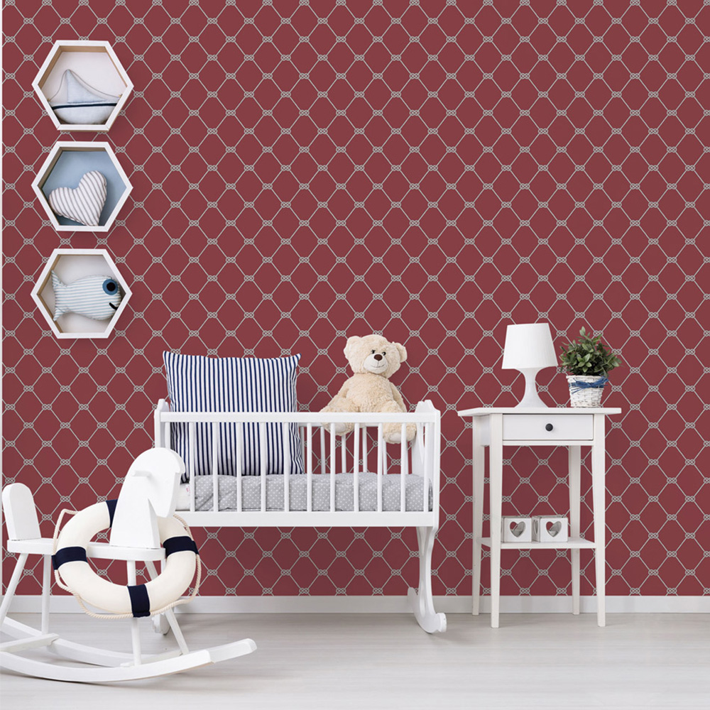 Update your walls with the nautical-themed Galerie Deauville 2 Geometric Red and White Wallpaper. This stylish wallpaper features a geometric design of sailing knots in a red and white colourway. Perfect for adding a nautical touch to any room, it's washable and wet removable for easy maintenance. A paste-the-wall application ensures a straightforward installation.