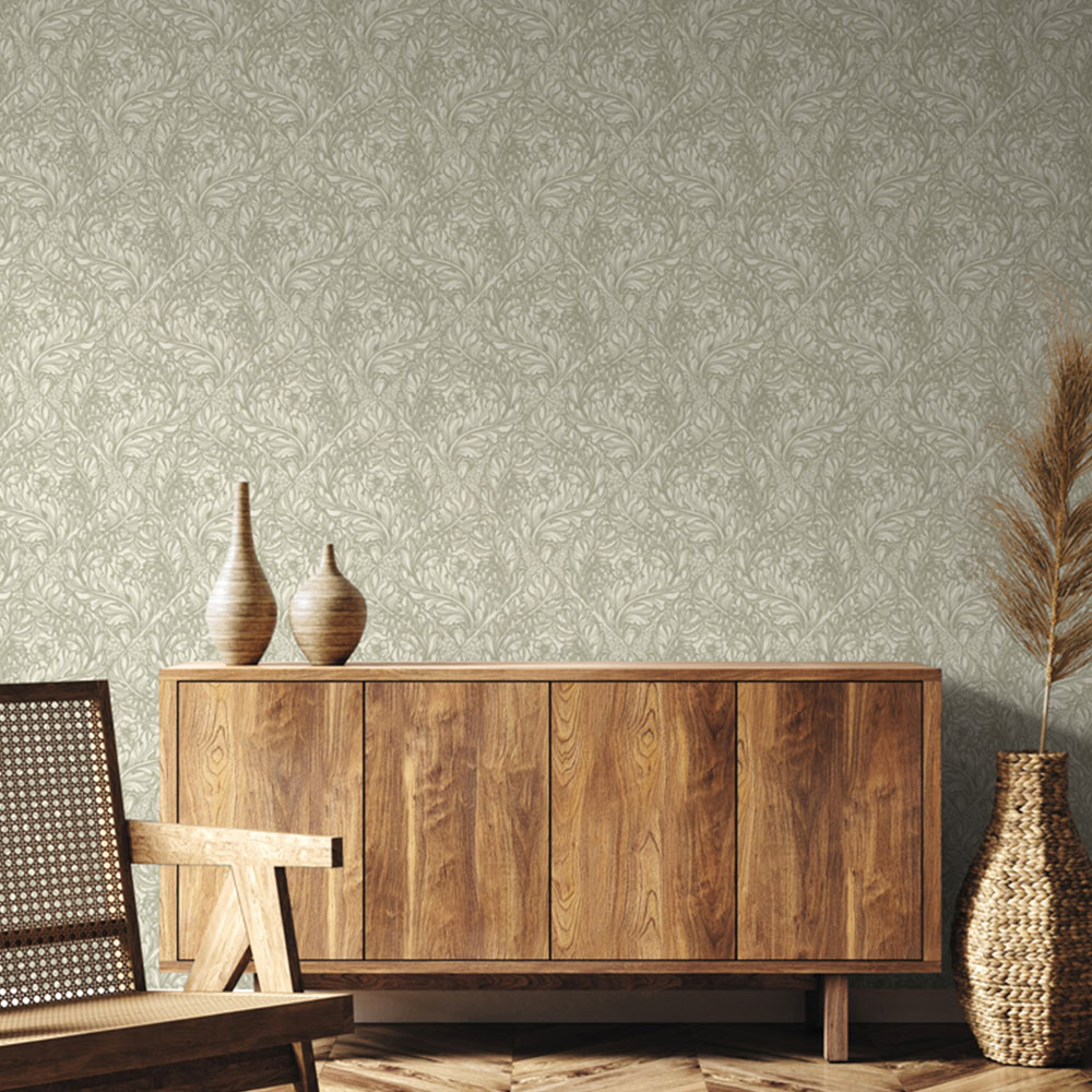 Enhance your space with this exquisite Galerie Llewelyn-Bowen Off The Wall Floral Green Wallpaper. Featuring a discrete lozenge pattern that keeps the design balanced, it is perfect for creating a romantic inside-outside ambience. This wallpaper transforms any boudoir into a charming bower. With its vibrant floral design, this wallpaper brings the wild beauty of British nature into your home, making it a delightful and enchanting addition to any room.