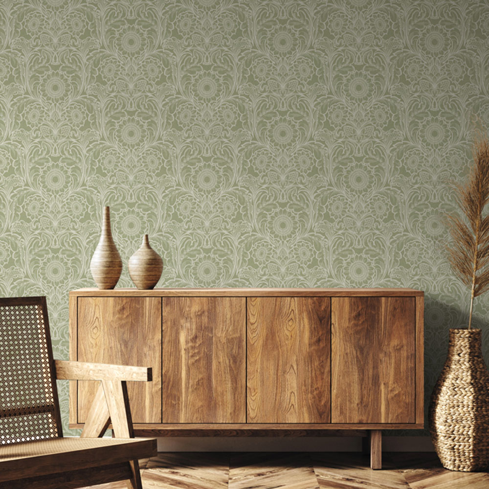 Like the warm embrace of the sun itself, the sunflower compels your attention in any decorative scheme. For this pattern, I wanted to celebrate the main character personality of the sunflower’s flower head while thoroughly enjoying the curvaceous character of its fleshy leaves and the firm verticality of the stalk. Inspired by 17th-century cut velvets from Italy, as well as the Arts and Crafts movement, ‘Sunnyside Up’ has a voluptuous rhythm that makes any wall feel sun-kissed.