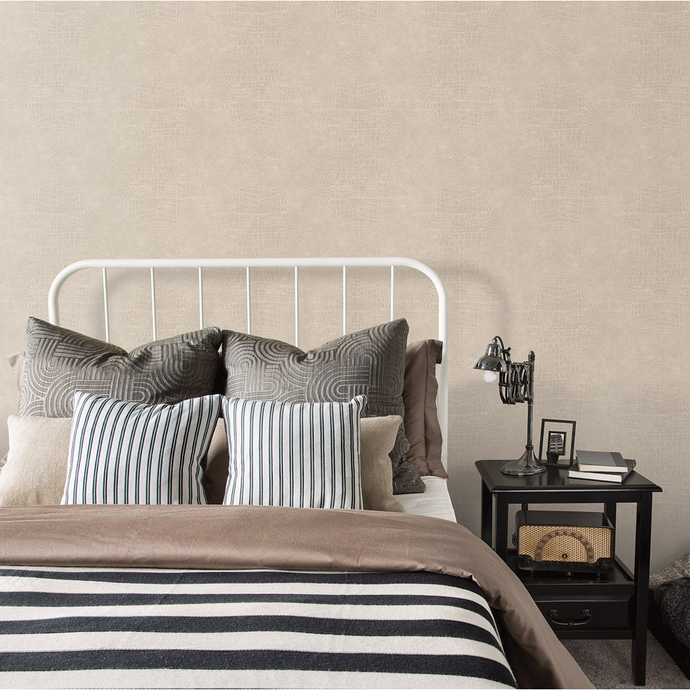 Elevate your home's style with Galerie Natural FX Wallpaper. This cream wallpaper boasts a striking crocodile pattern, its textured surface adding depth and authenticity. The rich, warm tones create a welcoming ambience, perfect for a whole-room transformation or as a statement feature wall. Its heavyweight construction ensures durability, while the scrubbable surface offers easy maintenance. Designed for effortless application with paste-the-wall technology, this peelable wallpaper also ensures simple removal. Each roll measures 10m long and 53cm wide.