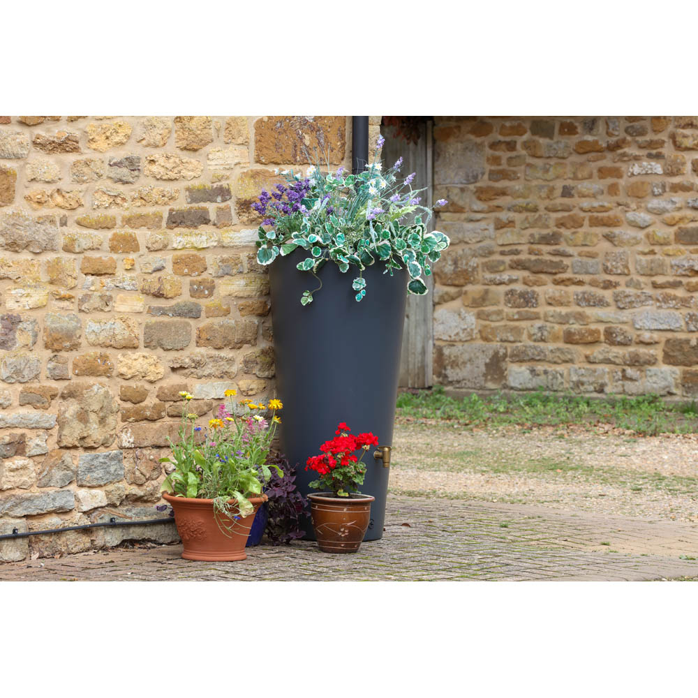 A stylish addition to any garden, the Graphite Grey Vaso 2 in 1 Water Tank (220L) seamlessly blends form and function. Its unique design ensures lasting durability. Rainwater harvesting is effortless, thanks to its dual functionality: collecting water from downpipes and via its removable planter cup top. Easy cleaning is ensured by this removable planter cup, which also allows for customized planting. Two integrated threads simplify the connection of an aquaquick tap (sold separately.