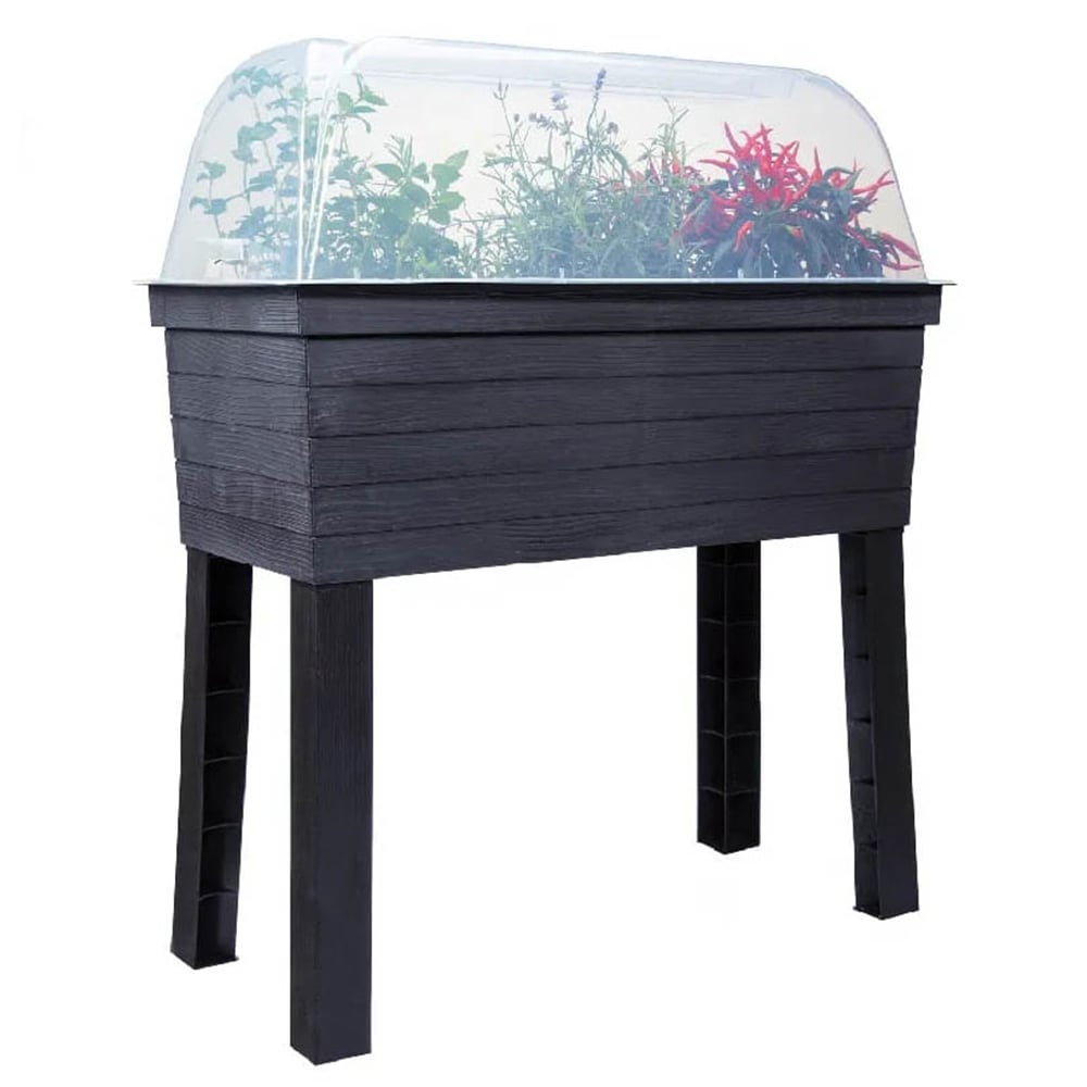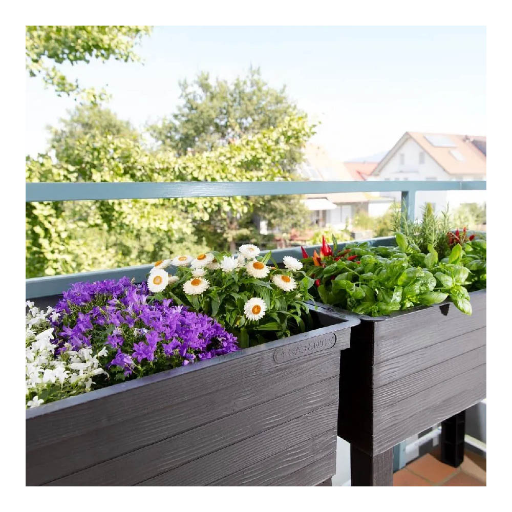 Create your own vibrant balcony garden with the Urban Balcony Raised Bed. This attractive raised bed, featuring a unique wood texture, is perfect for herbs, vegetables, and other plants, offering a mini-garden solution for smaller spaces. Ergonomically designed for comfortable working height, eliminating bending and kneeling. The raised base protects against stagnant moisture, and conveniently marked drainage holes allow for easy customization—simply drill and add a drainage hose to the underside.