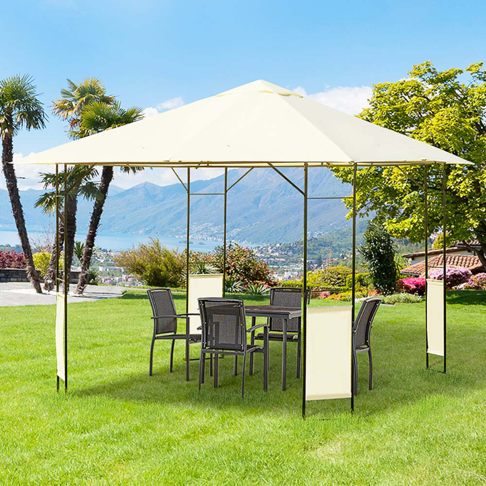 Enjoy your outdoor space with this elegant 3 x 3m cream gazebo. Its sturdy steel frame and water-resistant PE canopy top provide reliable shade for everyday use. The 180g polyester fabric, enhanced with a PA coating, offers protection from the sun and light rain. Lightweight and easily movable, this gazebo is a practical and attractive addition to any garden.