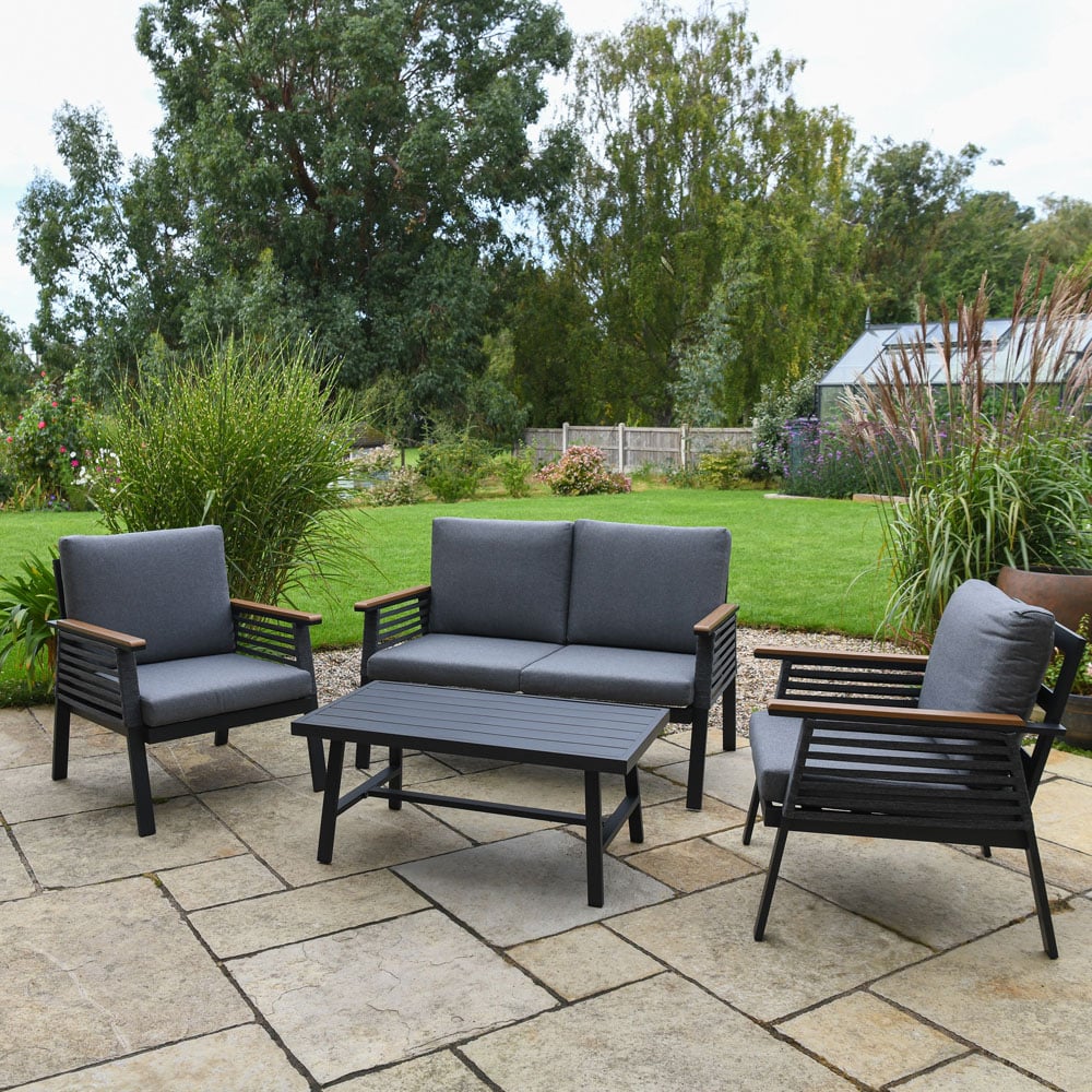Garden Gear 4 Seater Aluminium Grey Garden Furniture Set with Cushions