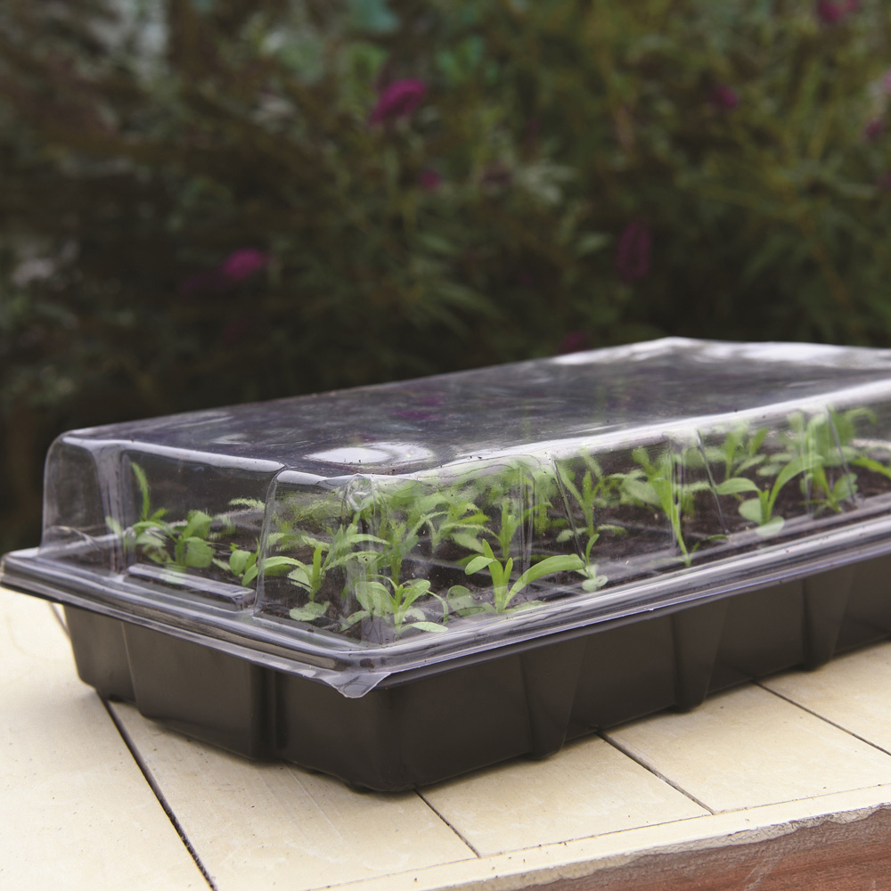 Start your seedlings off right with this handy plug and seed growing tray. Perfect for a sunny windowsill, this propagation tray features 40 clearly partitioned cells, providing the ideal environment for your young plants. Each cell measures 38mm square at the top, tapering to 26mm square at the base, and stands 45mm high. The clear, see-through lids ensure optimal light penetration for healthy growth. A must-have for any keen gardener.
