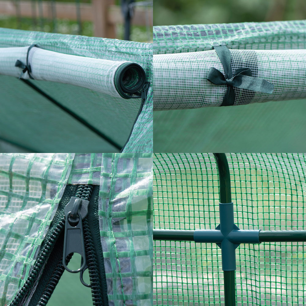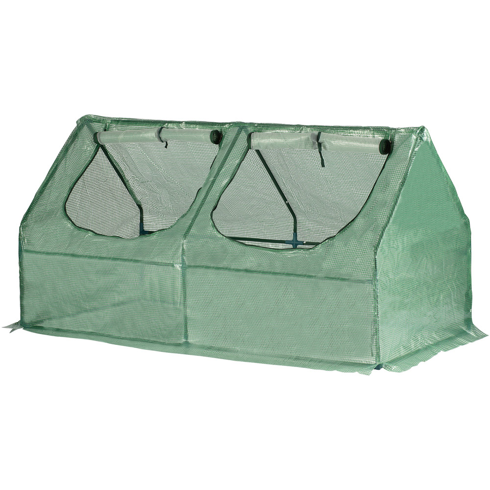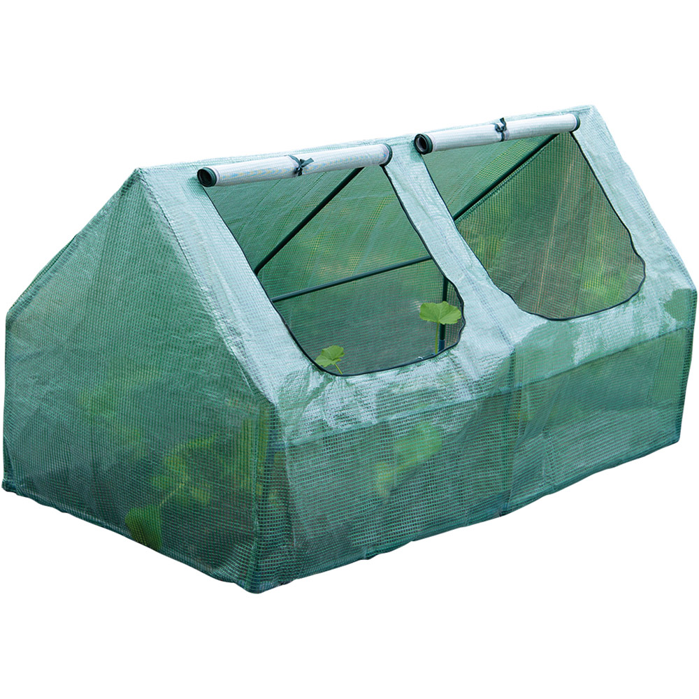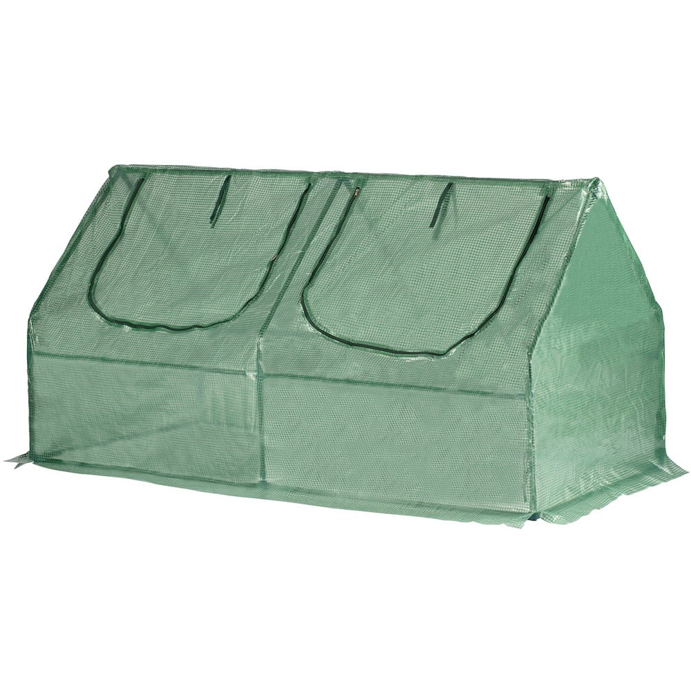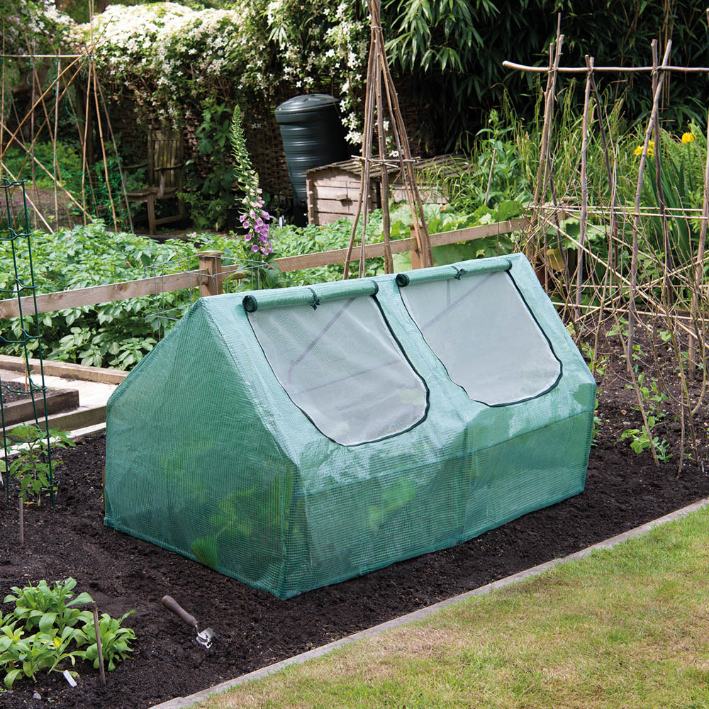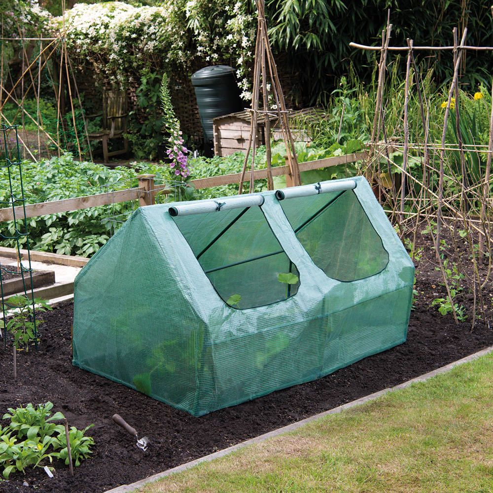 Shield your precious plants from the elements with this robust garden cloche. Ideal for nurturing seedlings, vegetables, and flowers, it offers reliable protection against harsh weather, particularly frost and rain. Simply lift and place vulnerable plants within its protective frame, or quickly drape it over existing beds. Featuring double-stitched seams for lasting durability, this cloche boasts two zipped windows that roll up for convenient access and temperature regulation. These windows can be fully covered with the PE roll-down covers. Secure it firmly to the ground using the included metal pegs. Lightweight and easy to move, this cloche can be readily repositioned to protect different crops throughout the growing season or easily dismantled for convenient storage. With dimensions of 180.5cm L x 92cm W x 92cm H, a weight of 3.35kg, and 16mm diameter tubing, it',s the perfect solution for extending your growing season. Assembly is required.