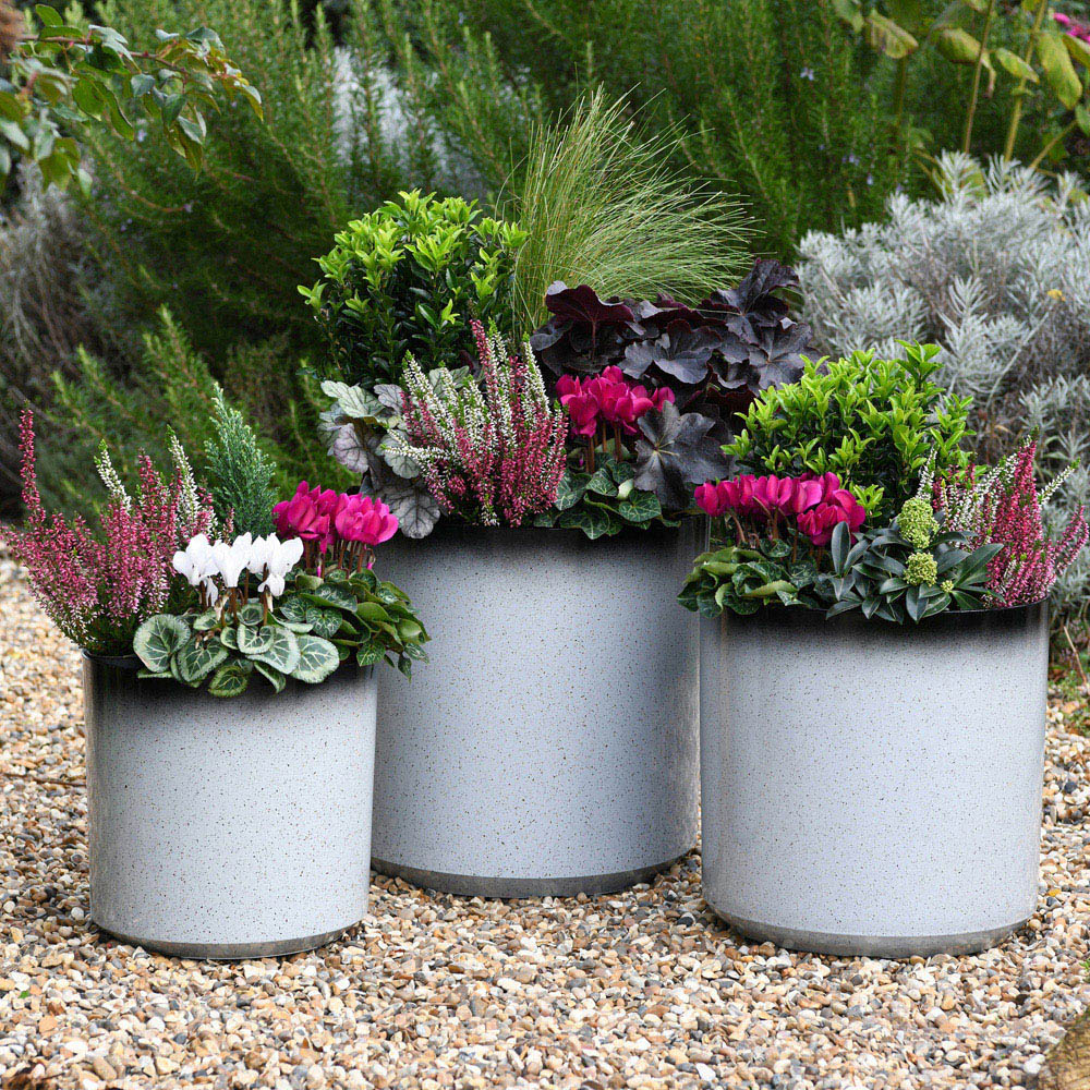 Garden Gear Cylinder Glazed Slate and Black Planter 3 Pack