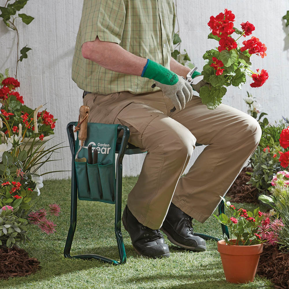 This versatile 2-in-1 folding kneeler and seat is your gardening companion. Transform it from a supportive kneeler to a comfortable seat in seconds, ideal for weeding, flowerbeds, or lawn edges. Keep your tools close at hand in the handy three-pocket Velcro pouch, usable in both kneeling and seated positions. Built with a durable steel frame and deep polypropylene foam cushioning for superior comfort, this lightweight (2.7kg) design folds to just 12cm for easy storage and transport. Perfect for indoor use too – handy for DIY, cleaning, or as extra seating. Enjoy comfortable gardening, free from aching knees and grass stains.