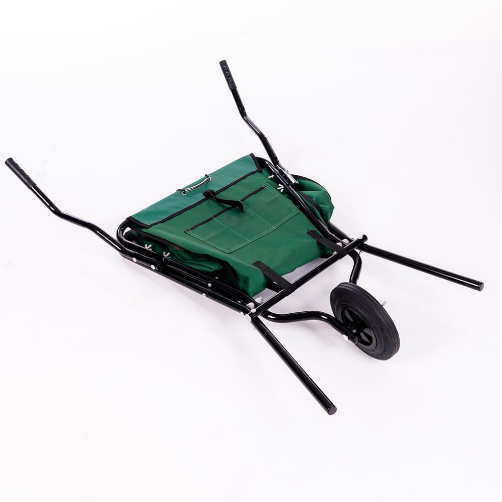 This folding wheelbarrow from Garden Gear offers a blend of convenience and resilience, making gardening tasks a breeze. Designed with space-saving in mind, its clever folding mechanism allows for effortless storage in sheds, garages or smaller gardens. Despite its compact form, it handles loads up to 30kg with ease, ideal for moving soil, plants, tools, and other gardening essentials. The robust 8" puncture-proof tyre ensures smooth movement across any garden terrain, while the powder-coated steel frame offers lasting strength and weather resistance. A durable, weatherproof polyester lining enhances its practicality, ensuring the tray withstands regular use. When unfolded, the generous dimensions and spacious tray offer ample room for all your gardening needs, and its folding design means it can be stowed away in moments. Whether you’re tackling larger projects or simply need a space-saving wheelbarrow, this is an essential tool for any garden. Dimensions: 1120 x 720 x 730mm. Folded Size: 1200 x 680 x 230mm. Tray Size: 720 x 400 x 320mm. Tyre Size: 200 x 50mm.
