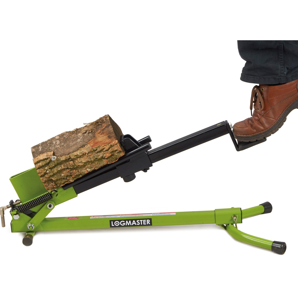 Effortlessly split logs with this foot-operated Logmaster log splitter. A low-cost, effective alternative to hydraulic splitters, it requires minimal effort: a few foot pumps are all it takes to split a log, making log preparation quick and easy year-round. This quiet, fume-free solution transforms a potentially hazardous task into a simple one. Its streamlined, maintenance-free steel construction handles both seasoned and green wood up to 45.7cm long and 25.4cm in diameter, splitting logs in seconds. Adjust the foot pedal to at least 33cm, apply firm pressure (repeated 3-4 times may be necessary for some logs), and enjoy the power of up to 1.2 tons of pressure – all without upper body strain. Ready to use, this fuel- and power-free splitter folds flat for compact storage and includes a safety clip for secure storage when folded. A heavy-duty, powder-coated steel build ensures lasting durability.