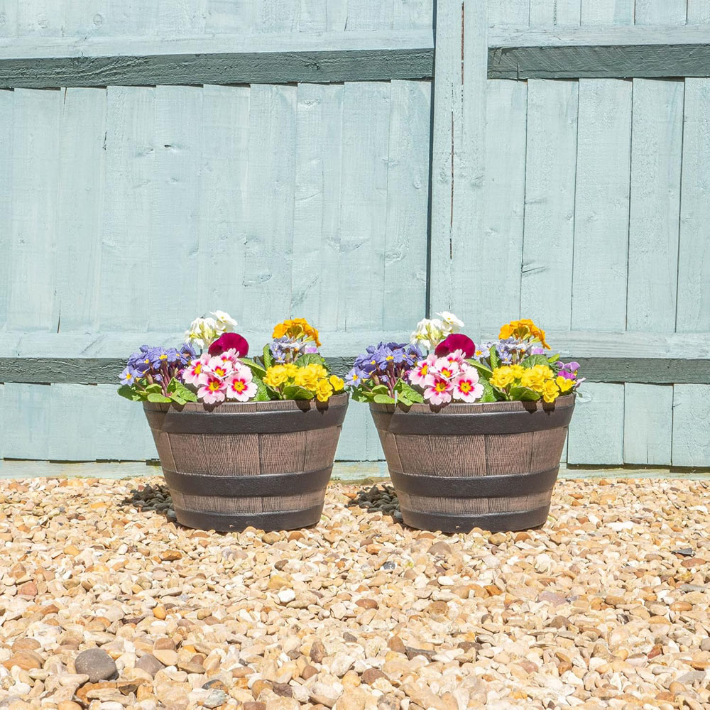 This charming small planter boasts a rustic oak-barrel design, offering all the traditional style without the weight. Crafted from a durable, weather-resistant material, it's built to withstand the elements and provide years of enjoyment. Its lightweight design makes it easy to reposition, ensuring you can effortlessly create the perfect garden display. Enjoy a quality addition to your outdoor space, offering exceptional value for money.