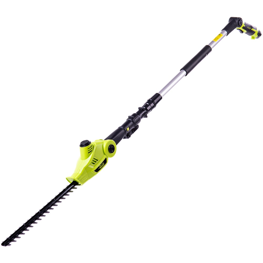 Experience effortless garden maintenance with the Garden Gear 12V Telescopic Hedge Trimmer. Cordless and convenient, this trimmer is powered by a rechargeable lithium-ion battery, delivering up to 60 minutes of uninterrupted use on a full charge. Enjoy freedom of movement without tangled cords, allowing you to work safely and efficiently anywhere in your garden. The telescopic function extends to 240cm, making high hedges and shrubs easily accessible, while the 450mm razor-sharp blade effortlessly cuts through branches and foliage up to 16mm thick. Achieve the perfect angle for precise trimming with the adjustable trimmer head and soft-grip handle, ensuring comfortable operation every time. Weighing just 2kg, the Garden Gear Telescopic Hedge Trimmer is lightweight and easy to handle, reducing fatigue during extended use. Safety is prioritised with a two-switch on/off mechanism for secure operation. The included high-performance fast charger fully replenishes the removable 2.0Ah lithium-ion battery in just over an hour, so you can quickly get back to your gardening tasks. Environmentally friendly and efficient, this hedge trimmer avoids the emissions and maintenance costs associated with petrol-powered alternatives. Ideal for trimming hedges, pruning shrubs, and tidying overgrown greenery, the Garden Gear 12V Telescopic Hedge Trimmer is your go-to tool for a perfectly manicured garden.