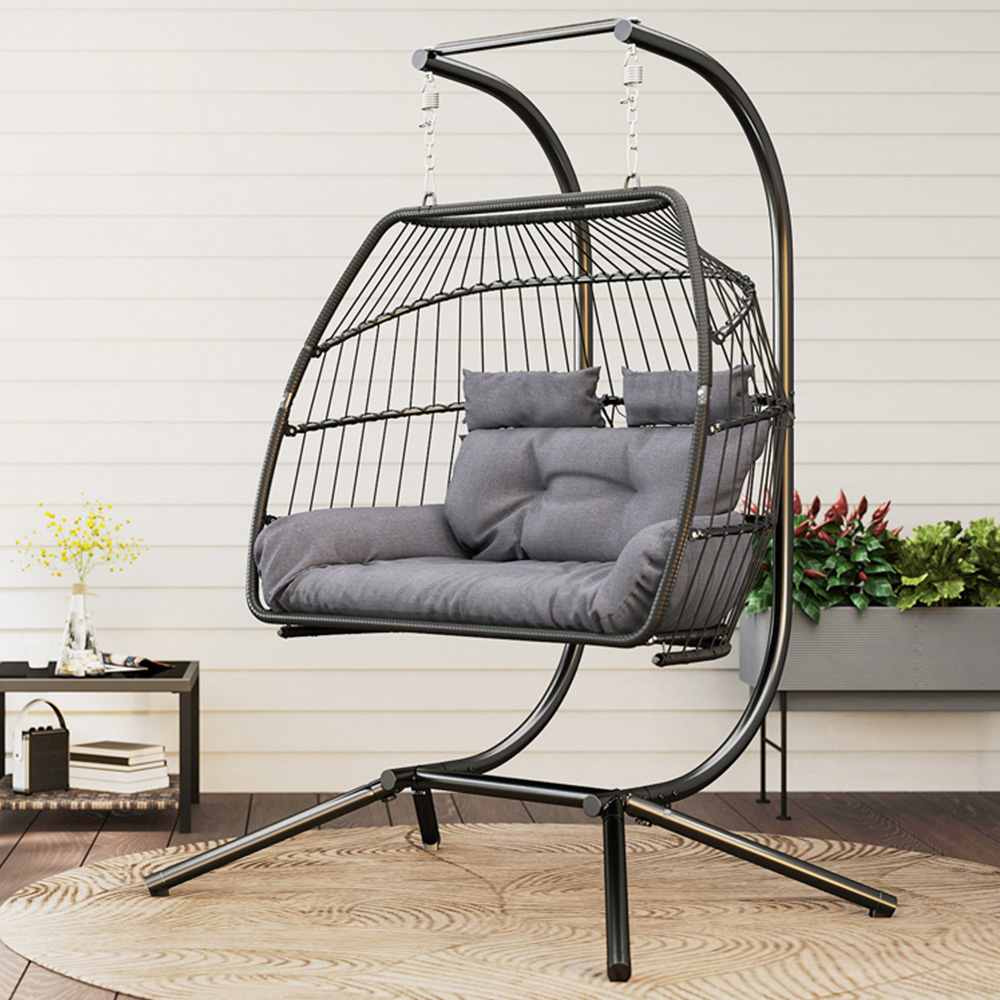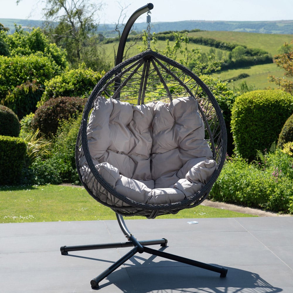 Living and Home Black 2 Seater Garden Hanging Egg Chair with Cushions