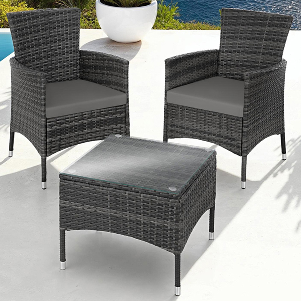 Akita 3 Piece Grey Rattan Effect Garden Set