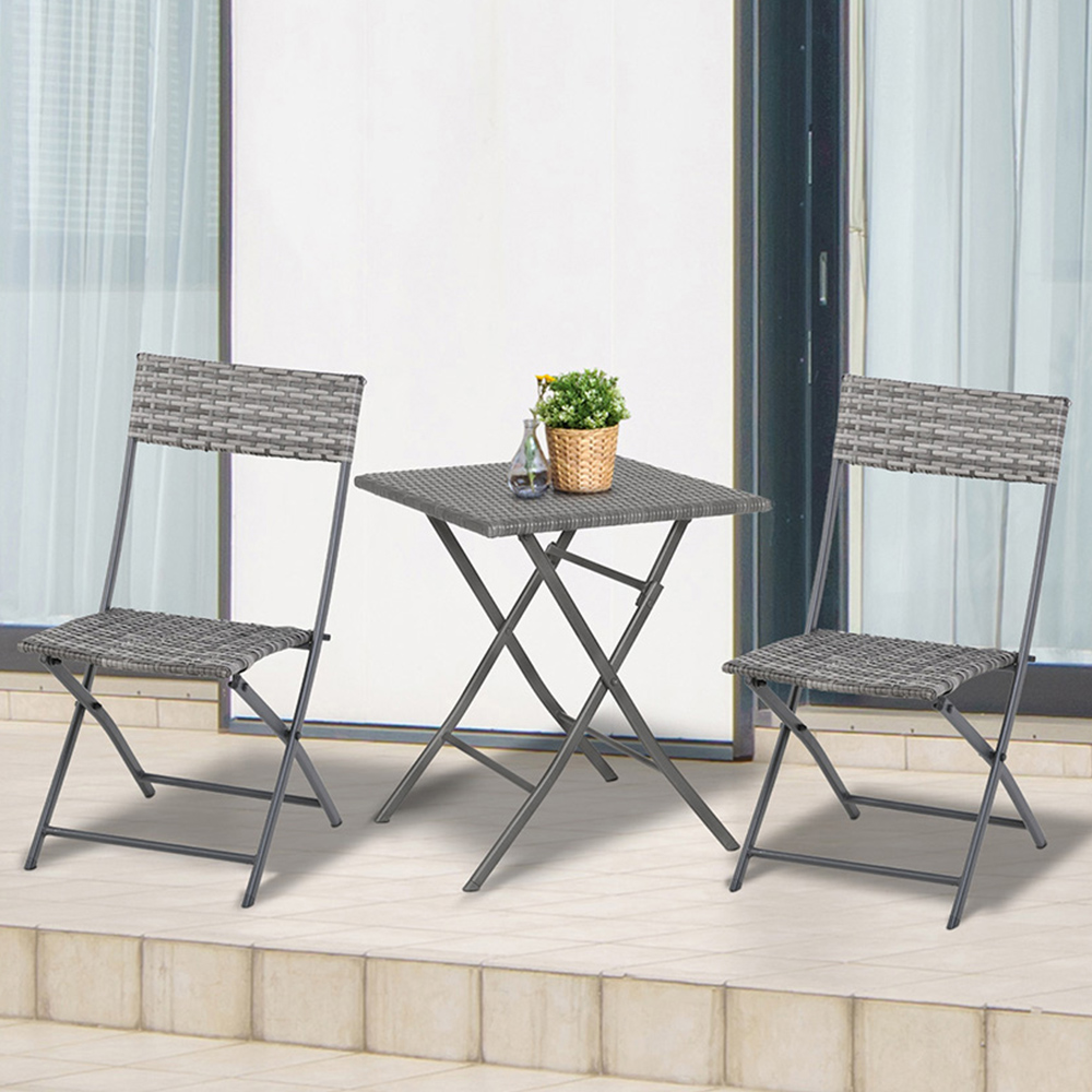 Outsunny Rattan 3 PCs Bistro Set Grey