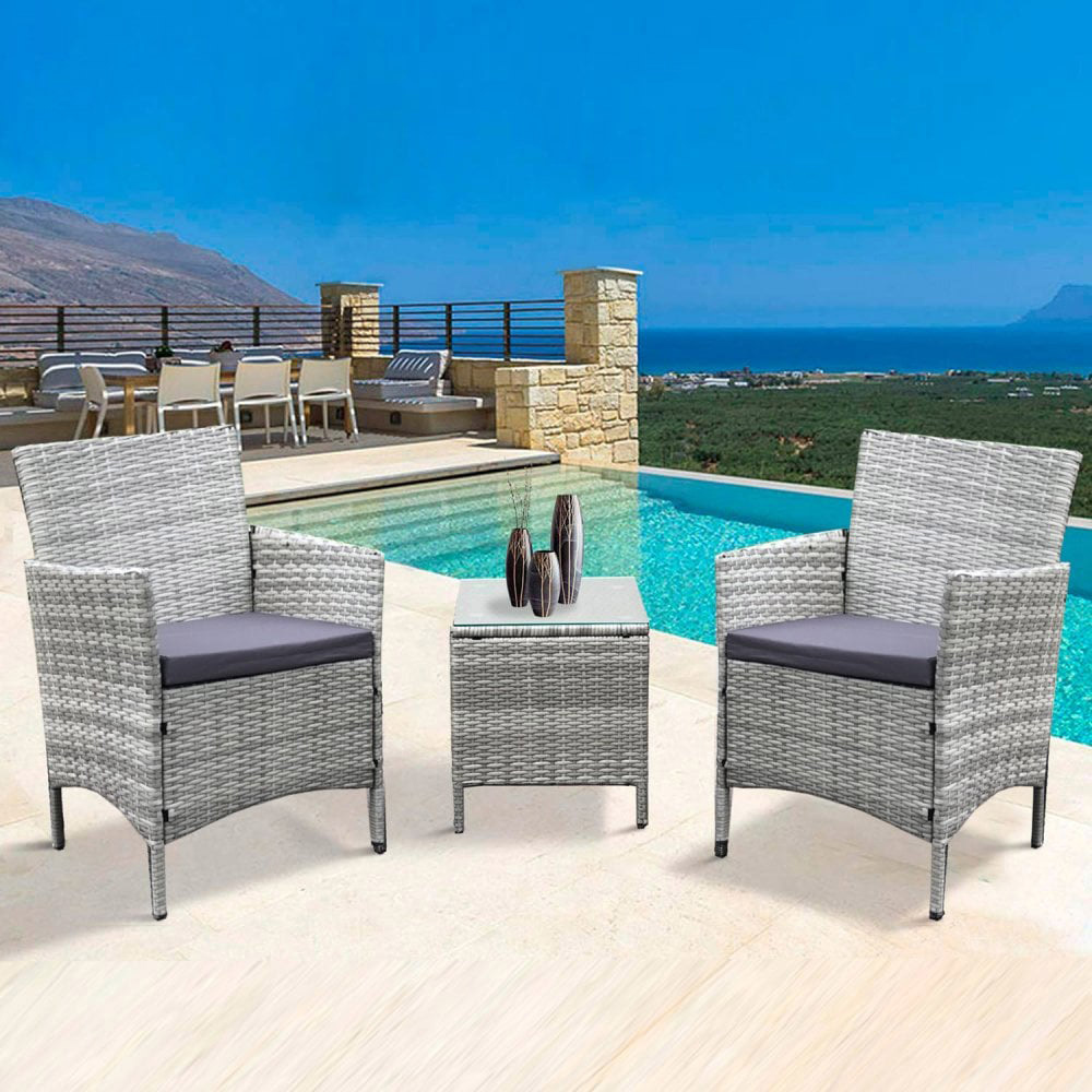 Outsunny 3 Piece Grey Rattan Bistro Set