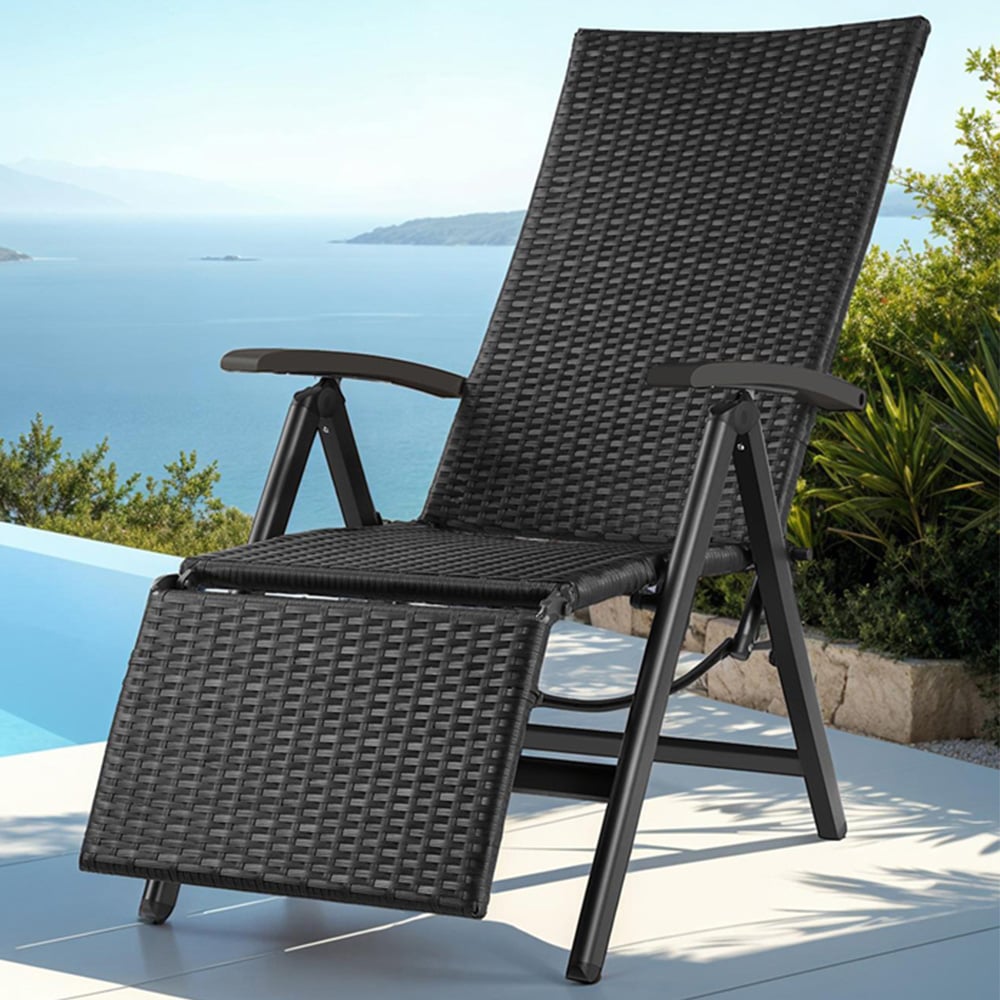 Outsunny Set of 2 Black and Grey Rattan Folding Garden Chair